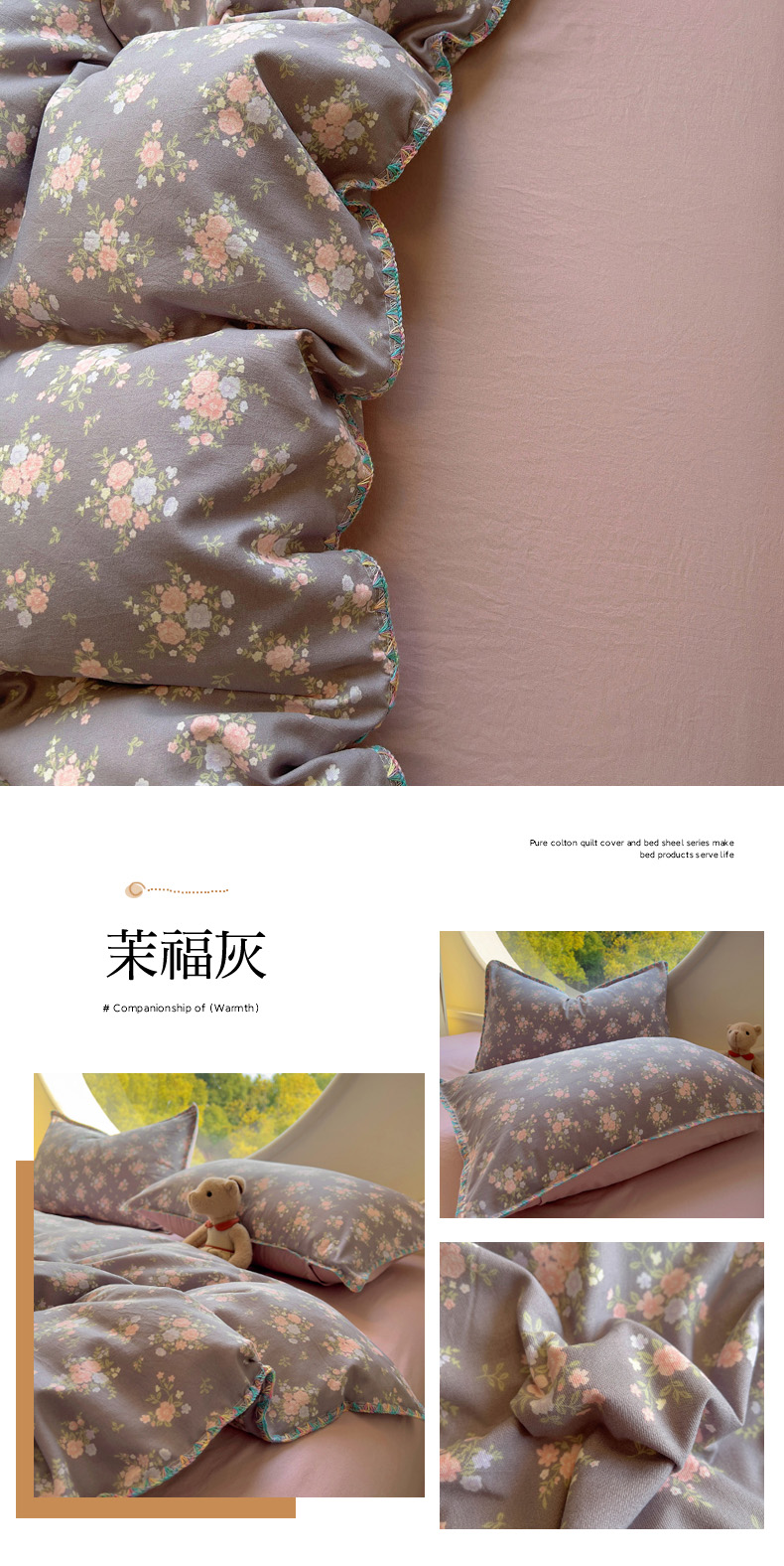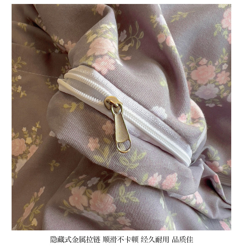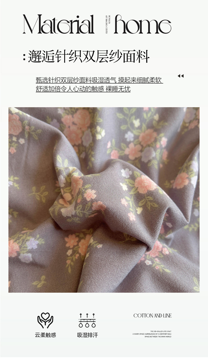 商品名称:葡萄家 2025爆款高克重彩色三角针A类针织双层纱四件套 提供买家秀 茉福灰