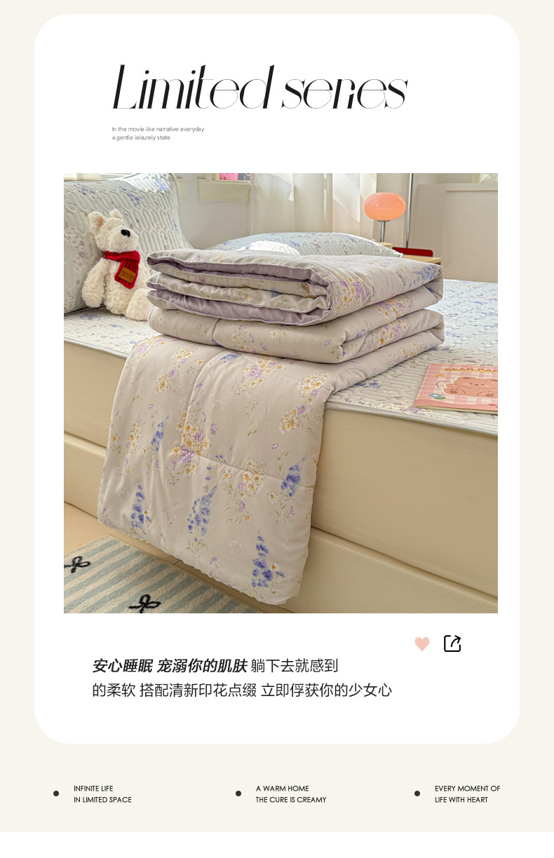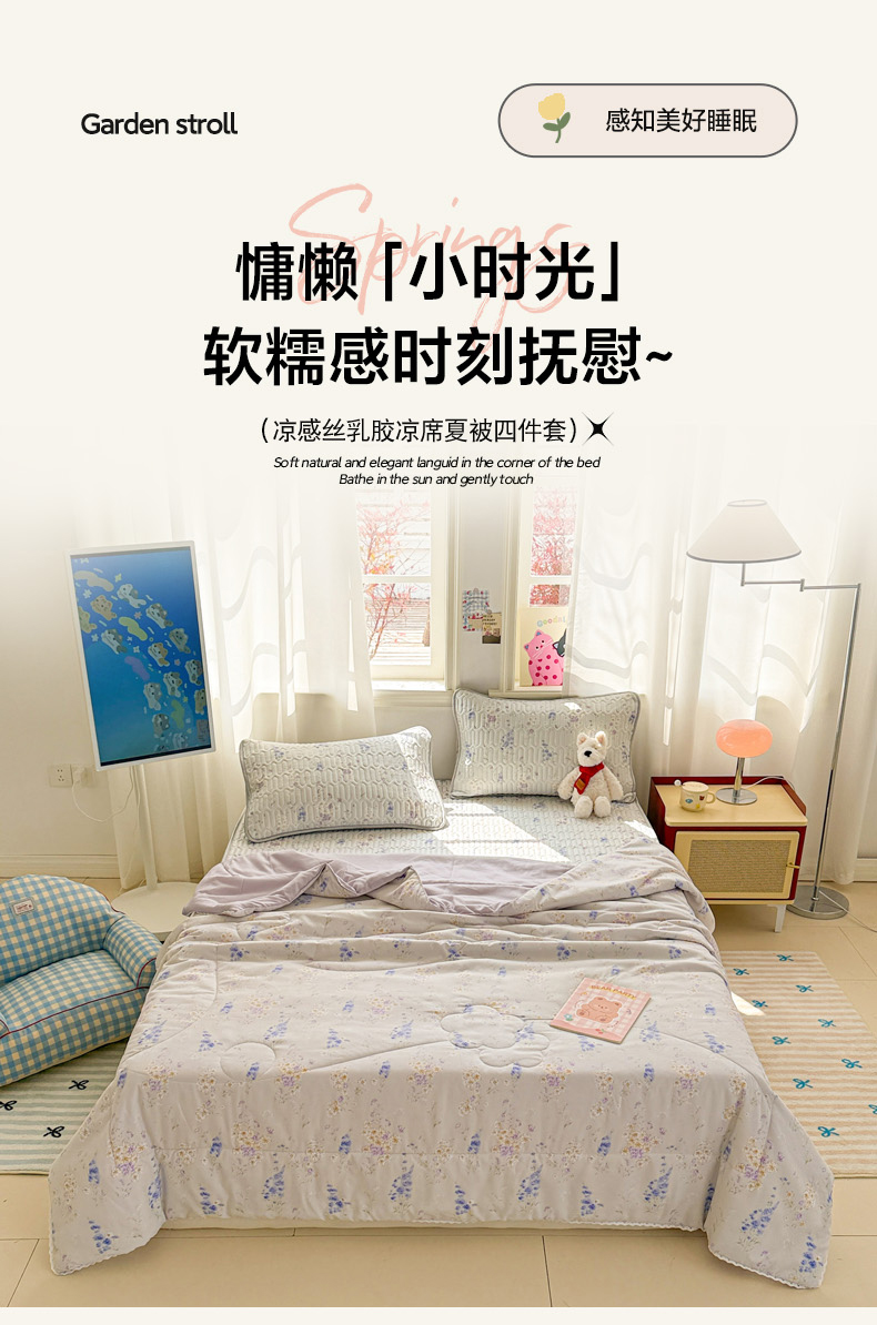 当前位置: 91家纺网 > 商品网购 > 床品套件 > 四件套 > 夏被四件套 > 慕尚家纺 2025春夏新款乳胶凉席水洗棉夏被夏凉被空调被三件套四件套 花梦