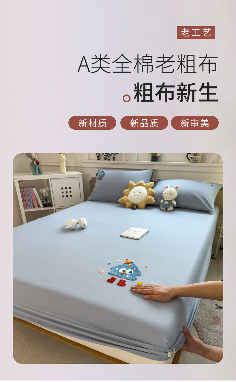 (总)席世家 2025新款全棉纯棉水洗棉床笠单床笠,水洗棉-呆萌熊,水洗棉-彩虹,水洗棉-可爱兔,水洗棉-盼盼,水洗棉-曲奇,水洗棉-小黑猫,水洗棉-星愿