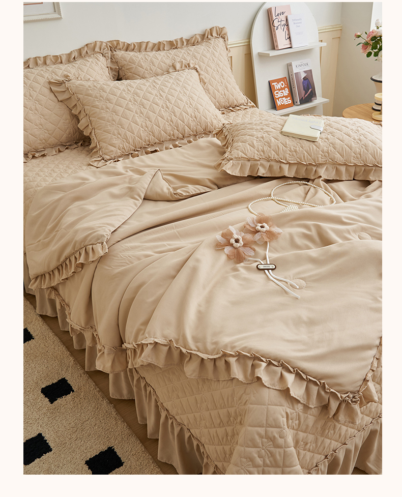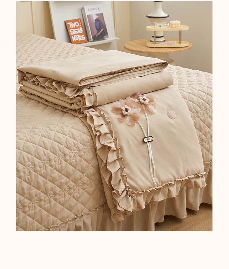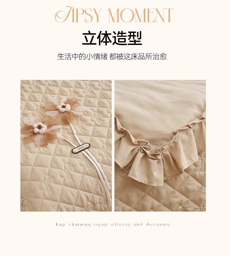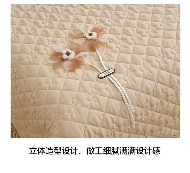 商品名称:恒爱家纺 2025新款针织棉立体扶桑花夏被床盖四件套 金典驼