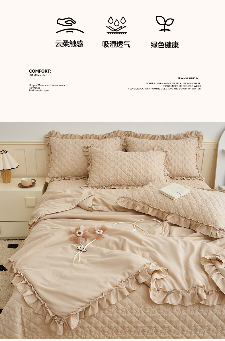 (总)恒爱 2022秋冬水晶绒翩翩花舞夹棉床裙四件套,大红色,豆沙红,橄榄绿,公主粉,桔色,咖啡色,孔雀绿,拉菲红,罗兰紫,玫红色,美人玉,米白色,米驼色,抹茶绿,浅灰色,紫色