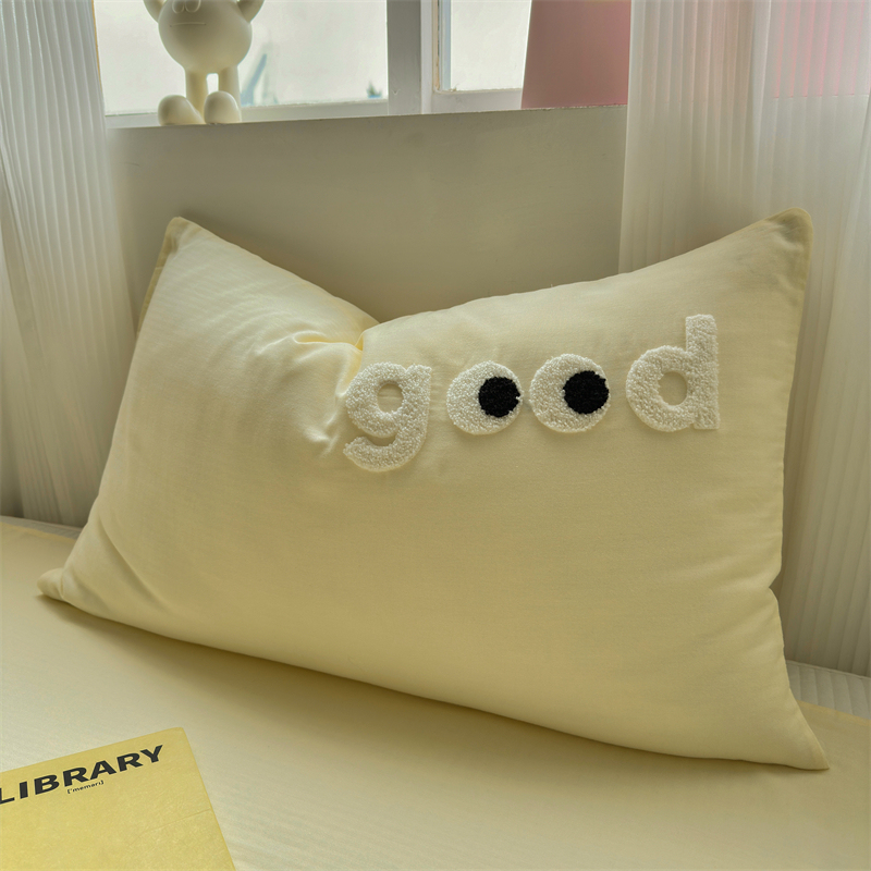 商品名称:丽涵 2025新款全棉纯棉大雁纹绣花单品枕套 good浅米黄