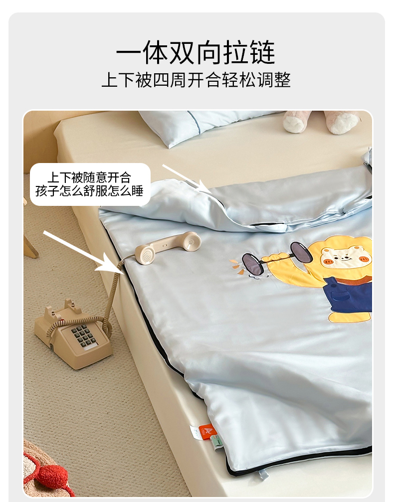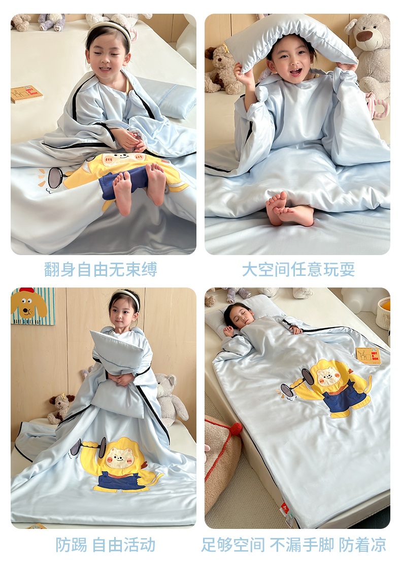 当前位置: 91家纺网 > 商品网购 > 婴童用品 > 婴童睡袋/防踢被 > 喜多兔儿童家纺 2025新款60S兰精天丝睡袋防踢被 灰蓝色运动小狮子