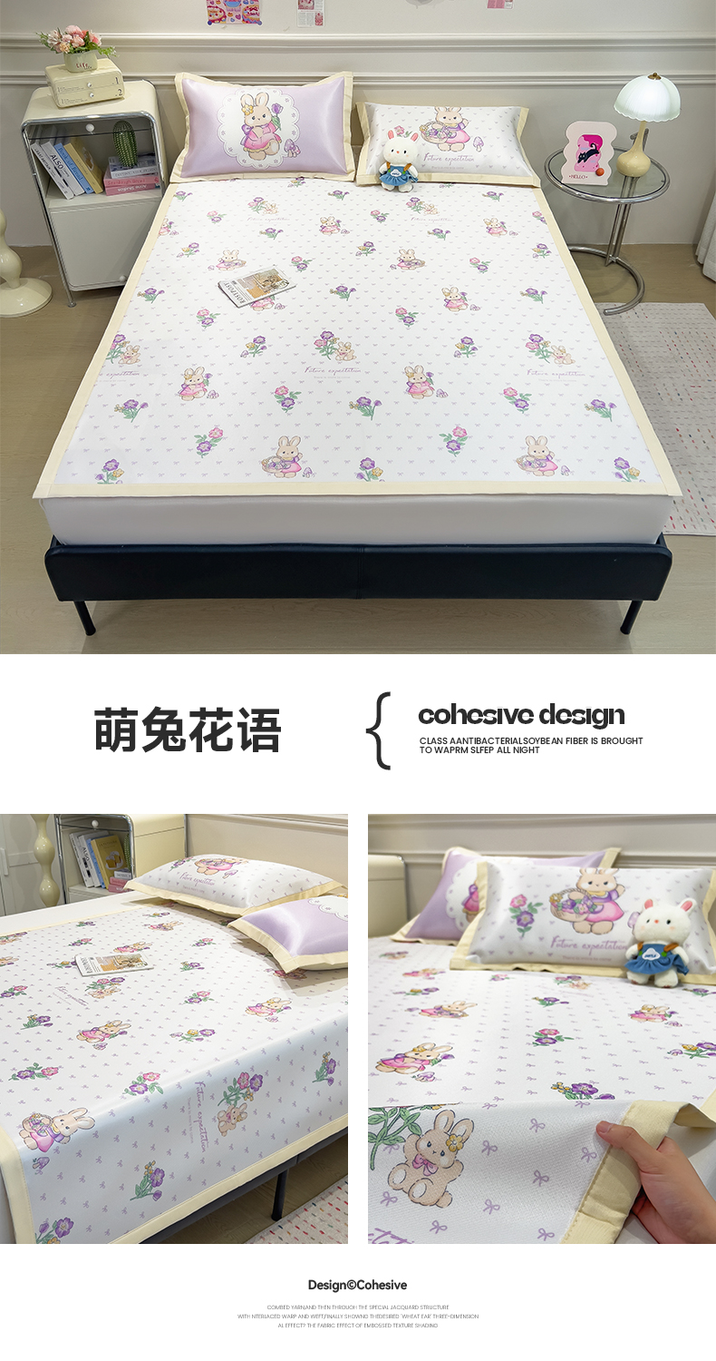 商品名称:摩妮卡 2025小清新数码冰丝席 碳光席三件套 萌兔花语