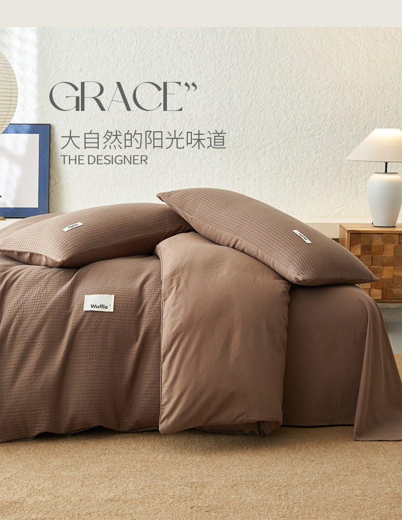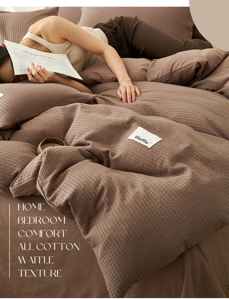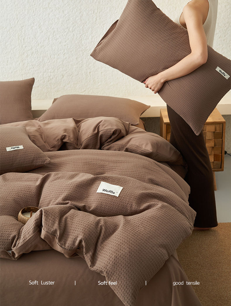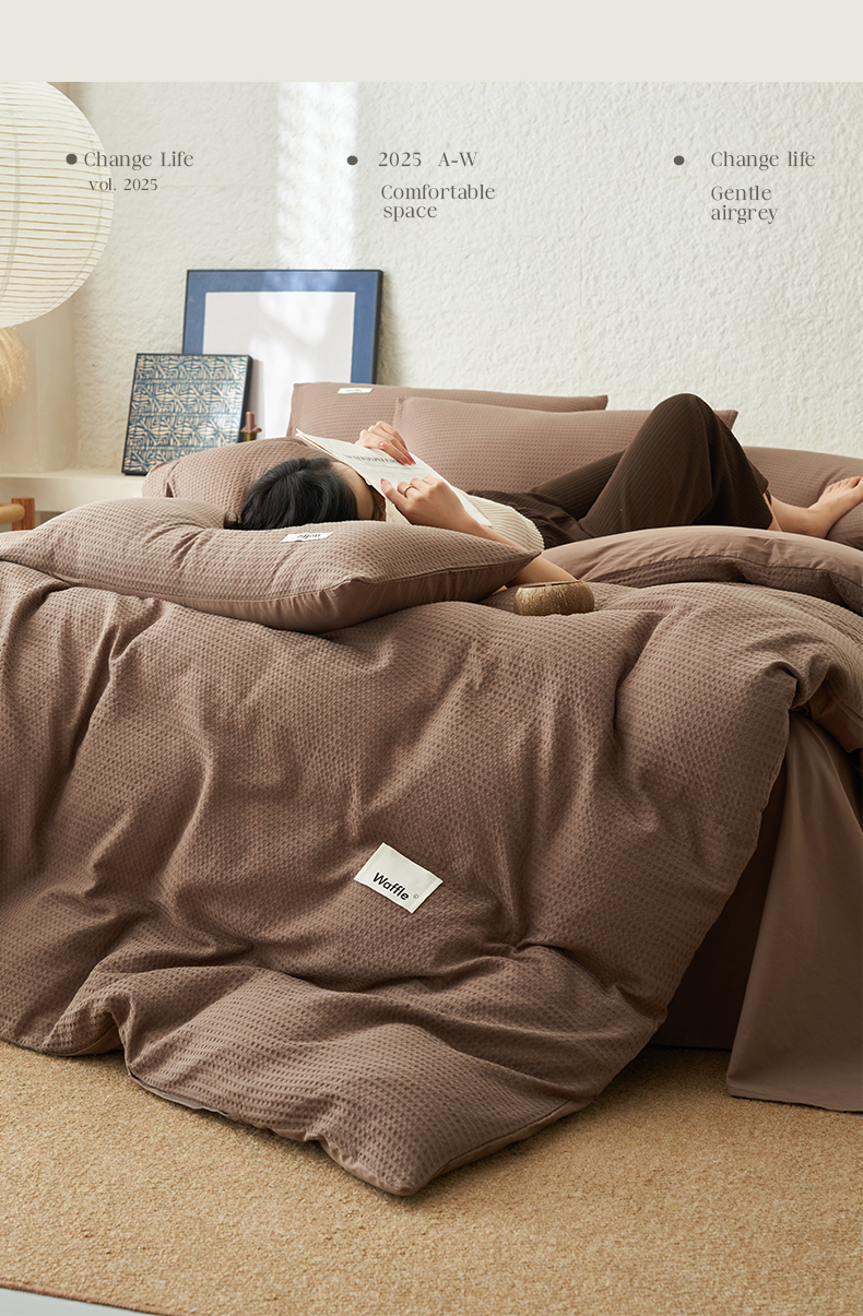 当前位置: 91家纺网 > 商品网购 > 床品套件 > 四件套 > 全棉普通四件套 > 寐绸家纺 2025新款纯棉华夫格四件套 华夫格四件套-烟灰棕