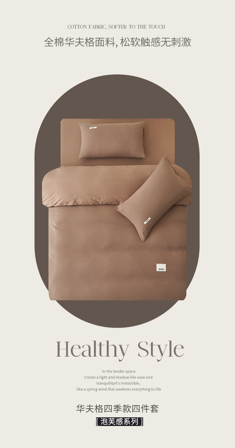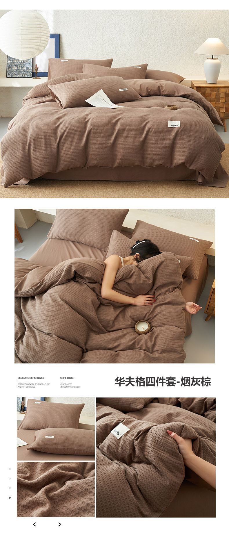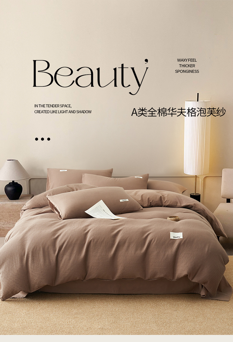 当前位置: 91家纺网 > 商品网购 > 床品套件 > 四件套 > 全棉普通四件套 > 寐绸家纺 2025新款纯棉华夫格四件套 华夫格四件套-烟灰棕