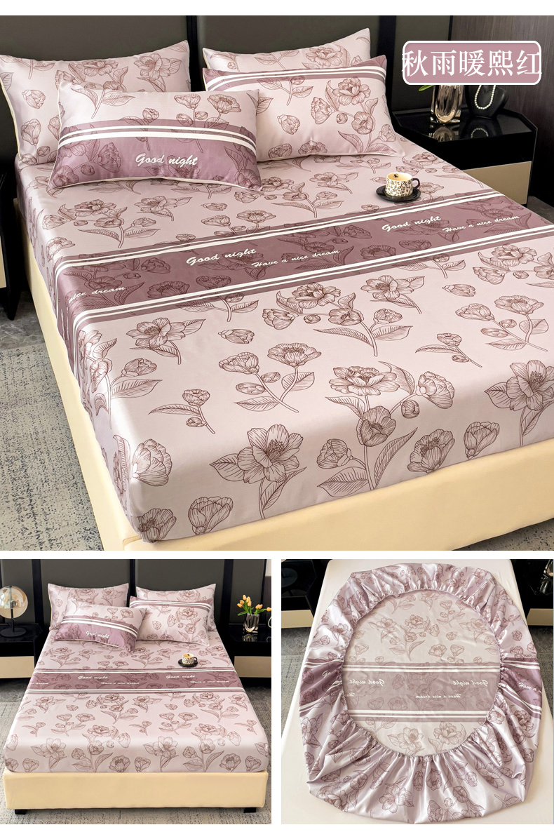 纽缦家纺 2025新款印花冰丝床笠 秋雨暖熙红