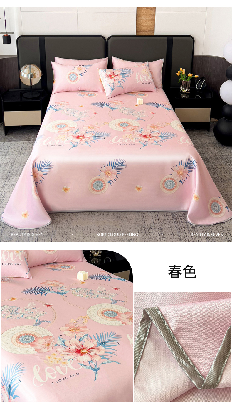 商品名称:纽缦家纺 2025新款印花冰丝防滑床单 春色