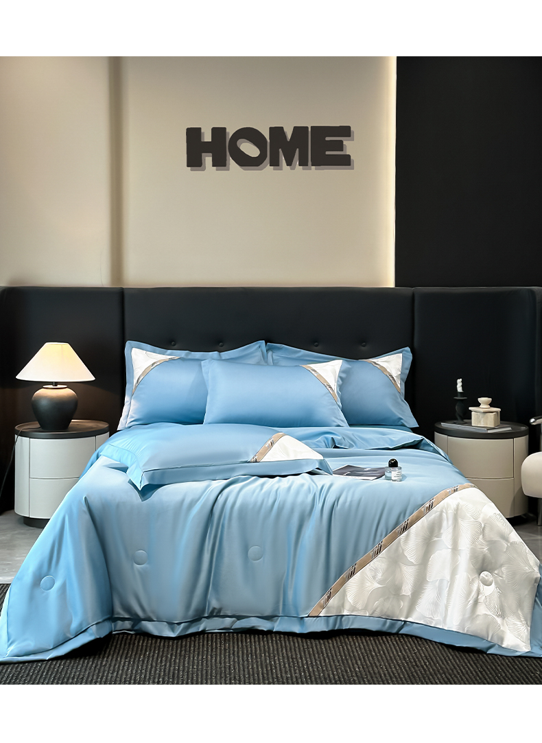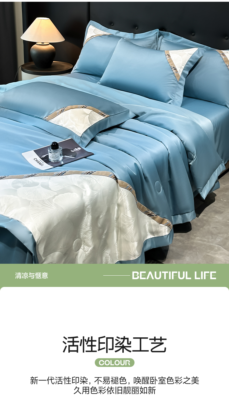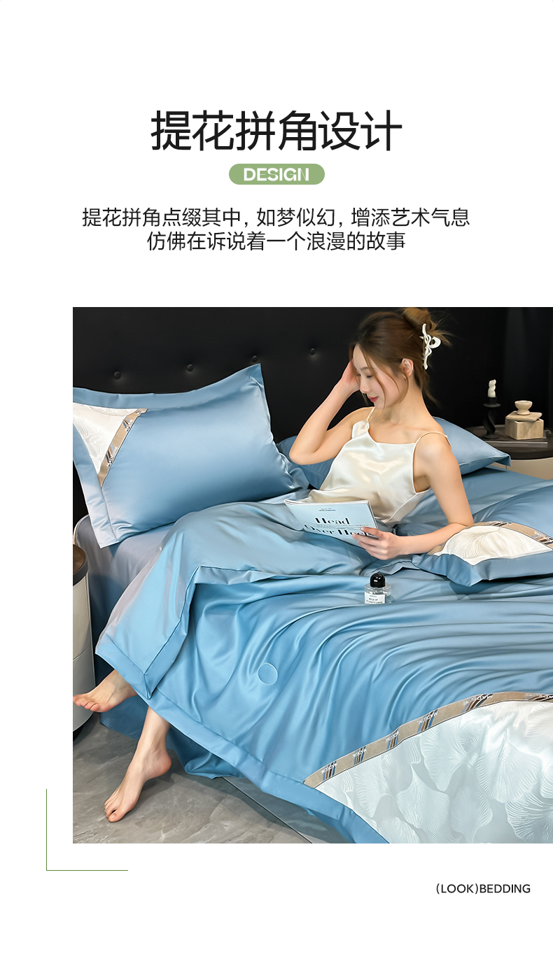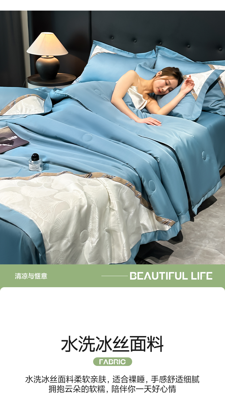当前位置: 91家纺网 > 商品网购 > 床品套件 > 四件套 > 夏被四件套 > 索飞特家纺 2025新款水洗冰丝拼角夏被四件套-漫雅 漫雅-宾利蓝