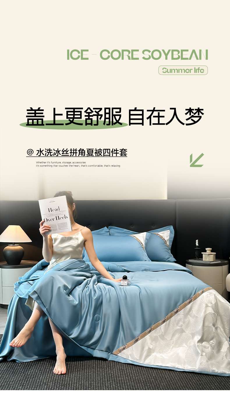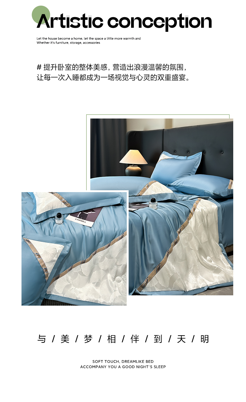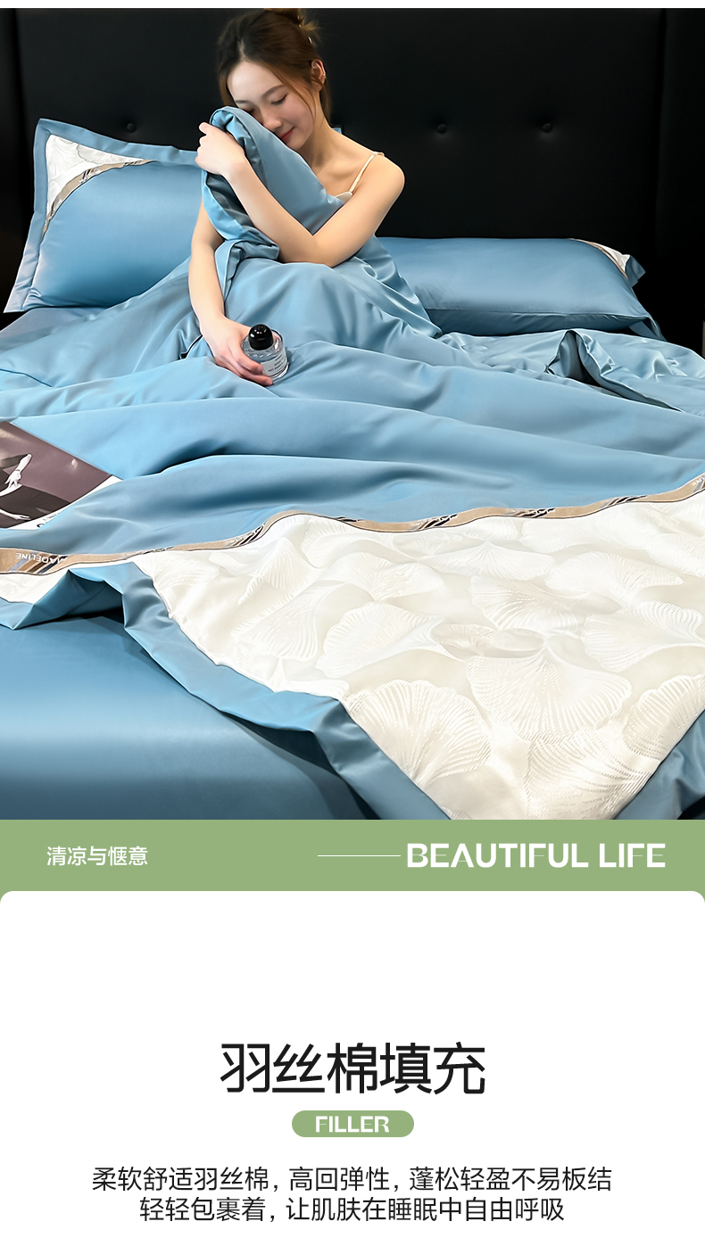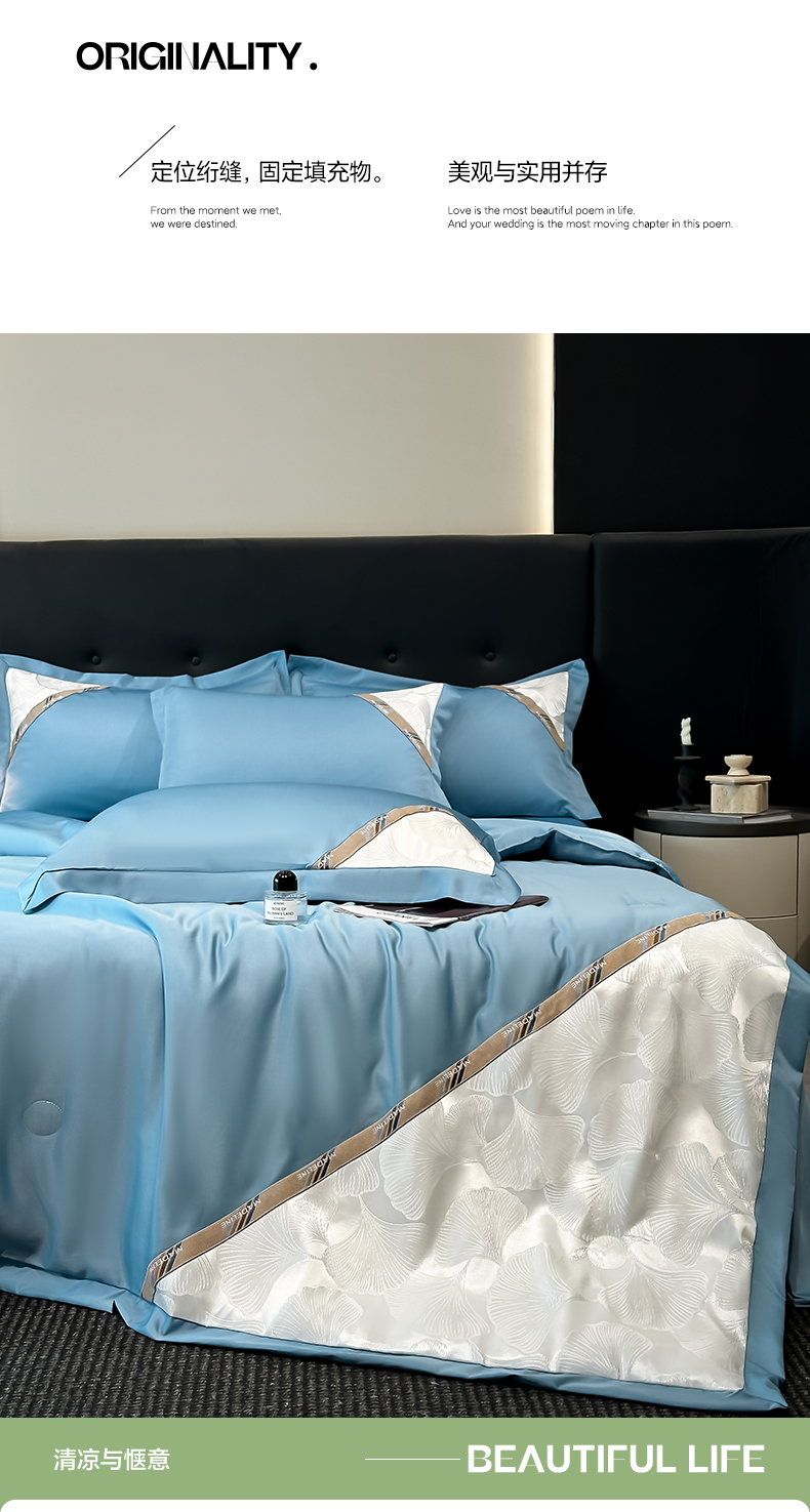当前位置: 91家纺网 > 商品网购 > 床品套件 > 四件套 > 夏被四件套 > 索飞特家纺 2025新款水洗冰丝拼角夏被四件套-漫雅 漫雅-宾利蓝