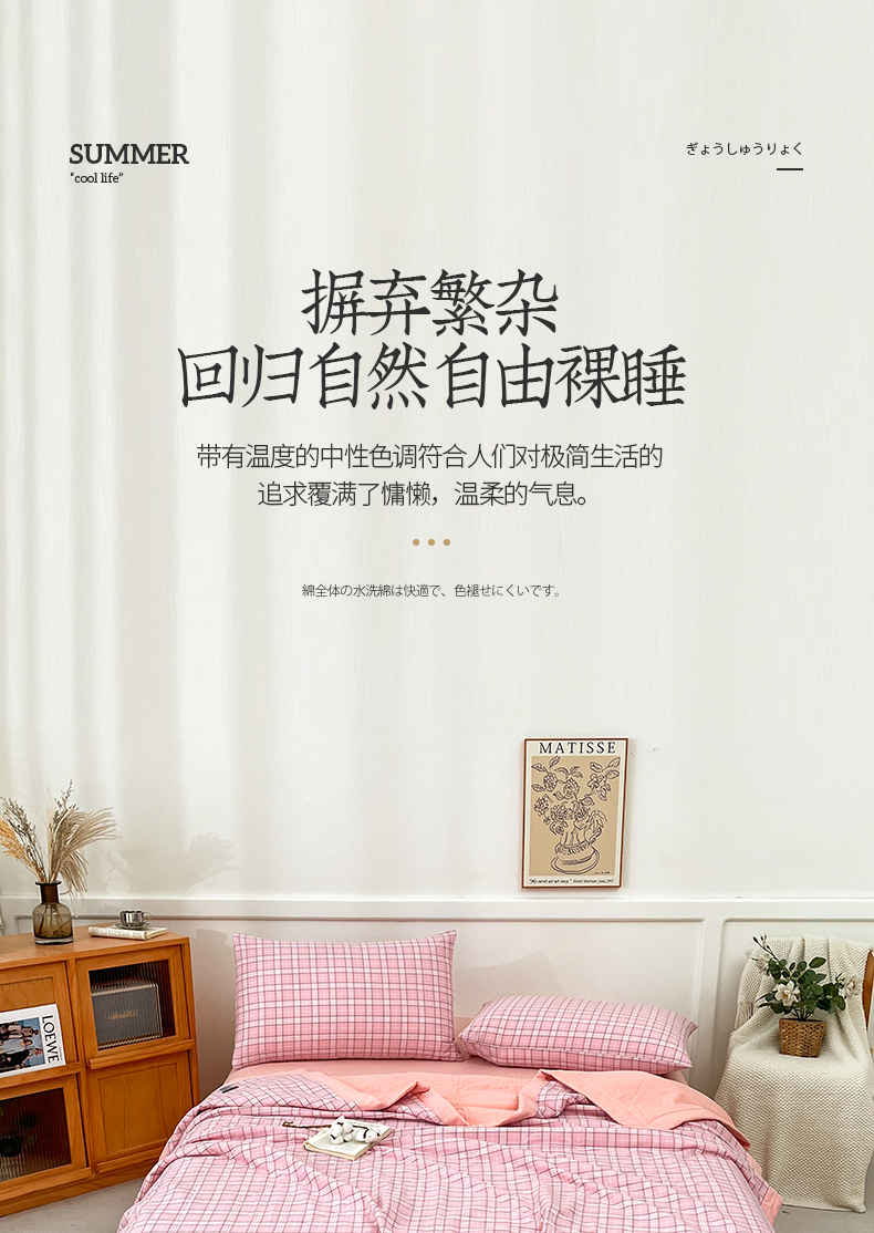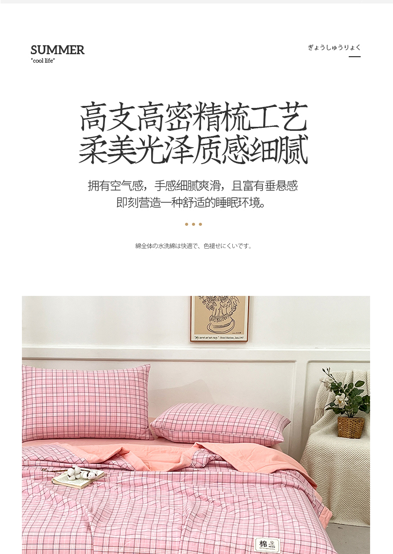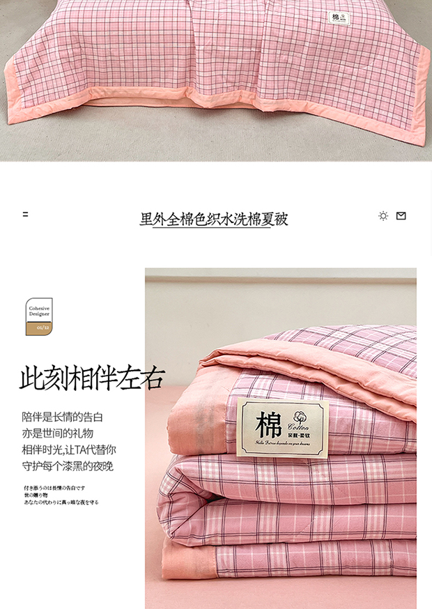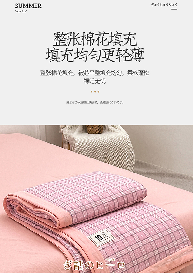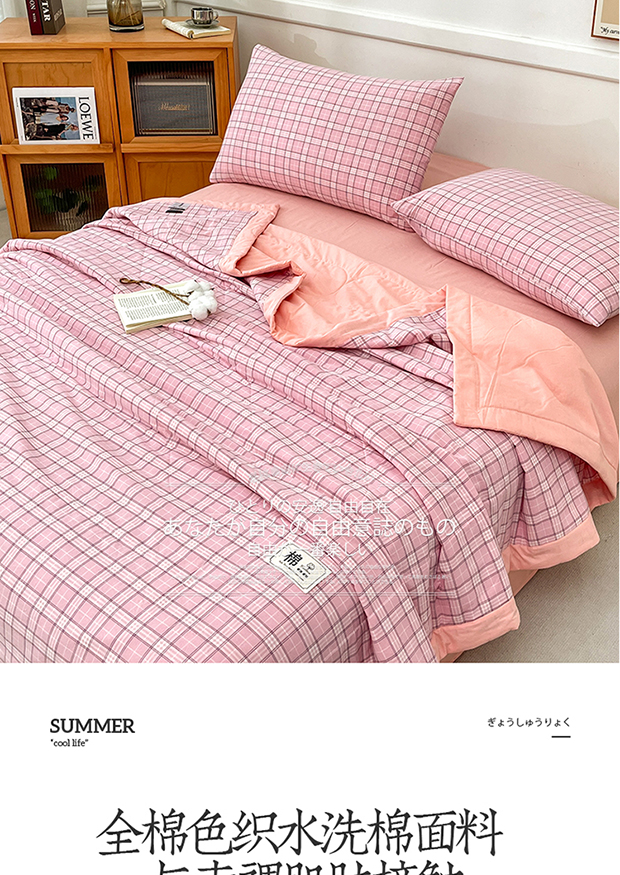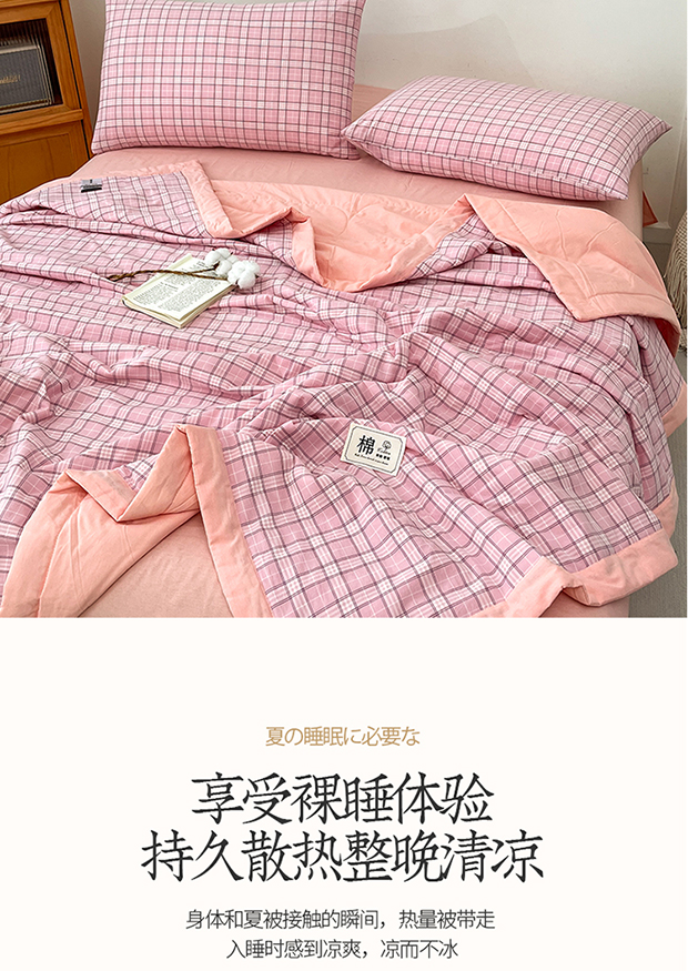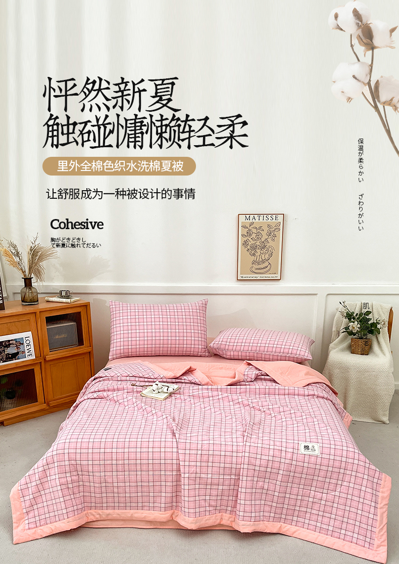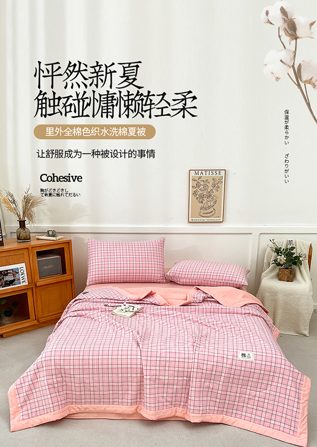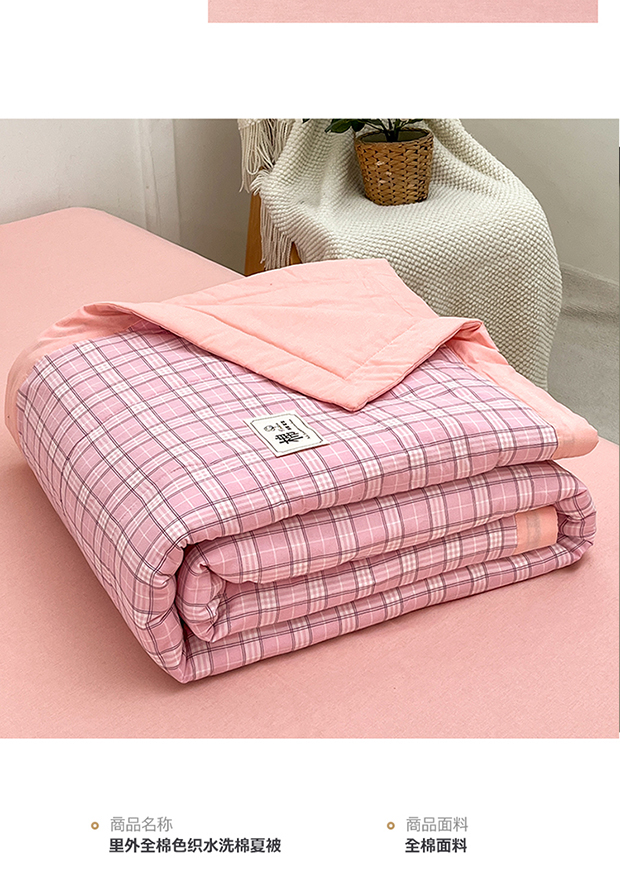• 91家纺网 家纺一手货源 找家纺 鸣升家纺 2025新款100%里外全棉棉花夏被无印风全棉色织水洗棉夏凉被空调被夏被春秋被单人可机洗 格诺粉