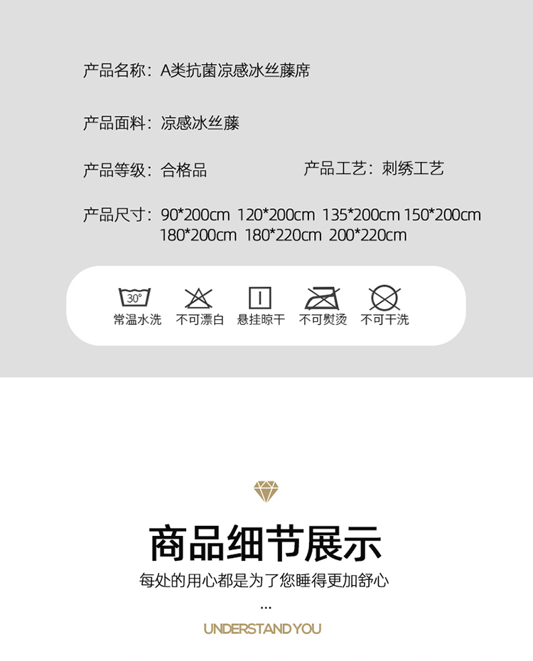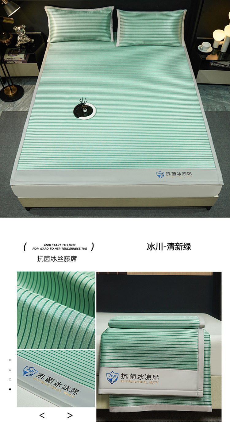 当前位置: 91家纺网 > 商品网购 > 床上用品 > 凉席 > 冰丝席 > 小萌虎 2025新款轻柔丝抗菌冰丝藤凉席(复合三明治款)宽包刺绣冰丝软席藤席 抗菌三明治冰丝藤席-冰川-清新绿