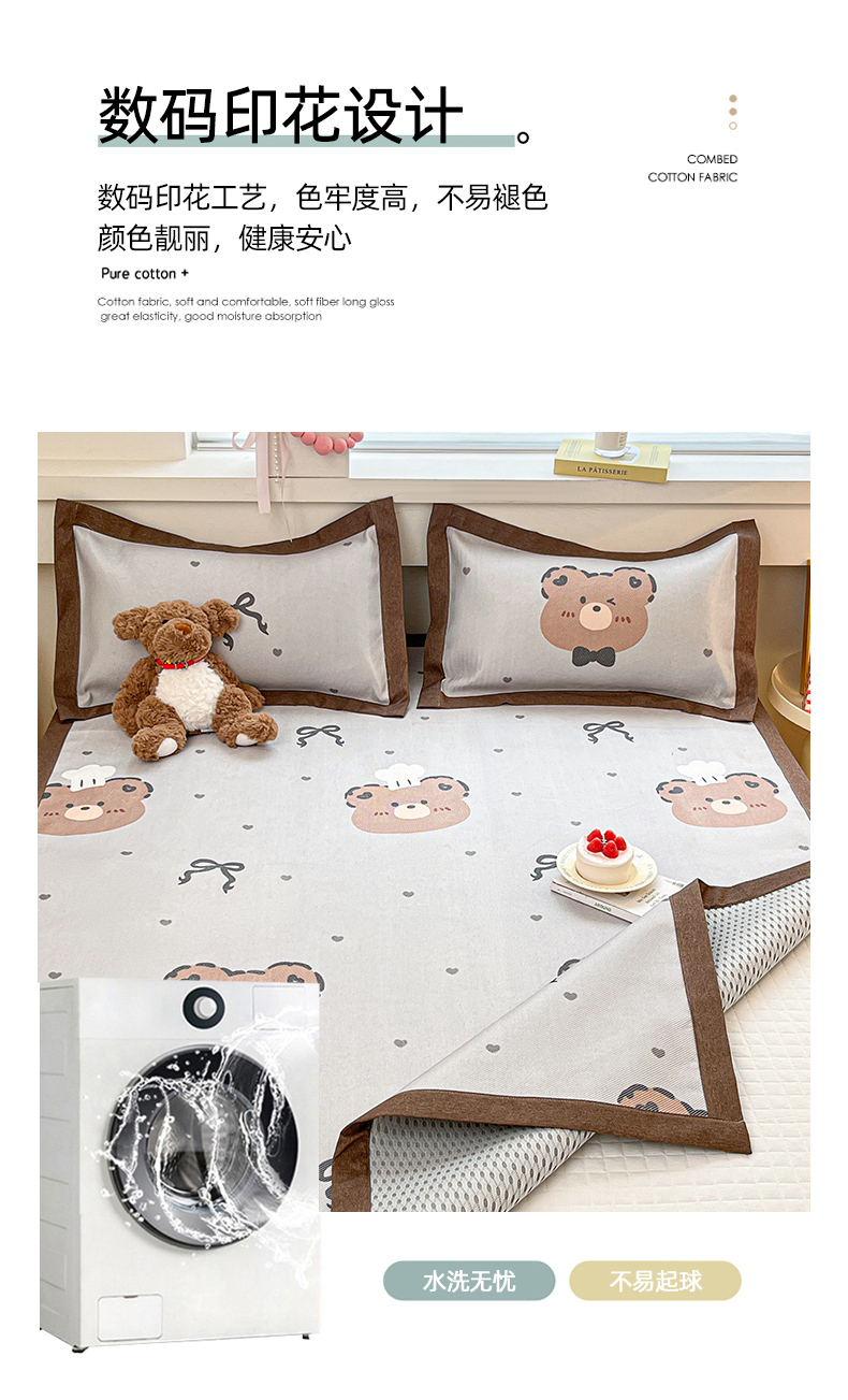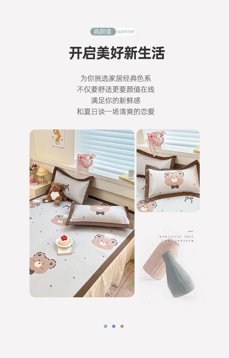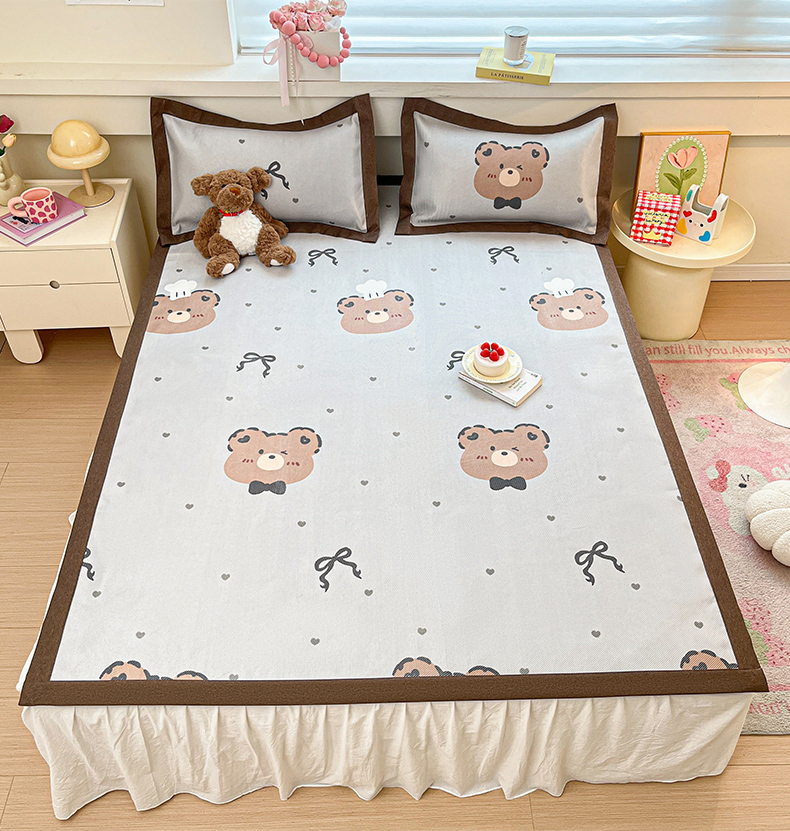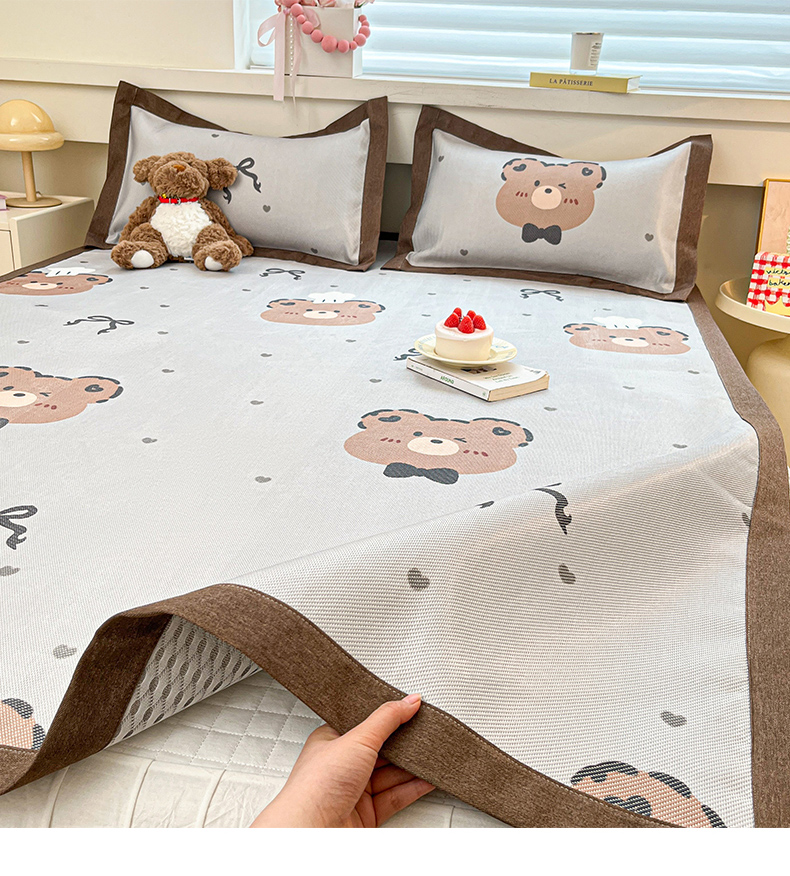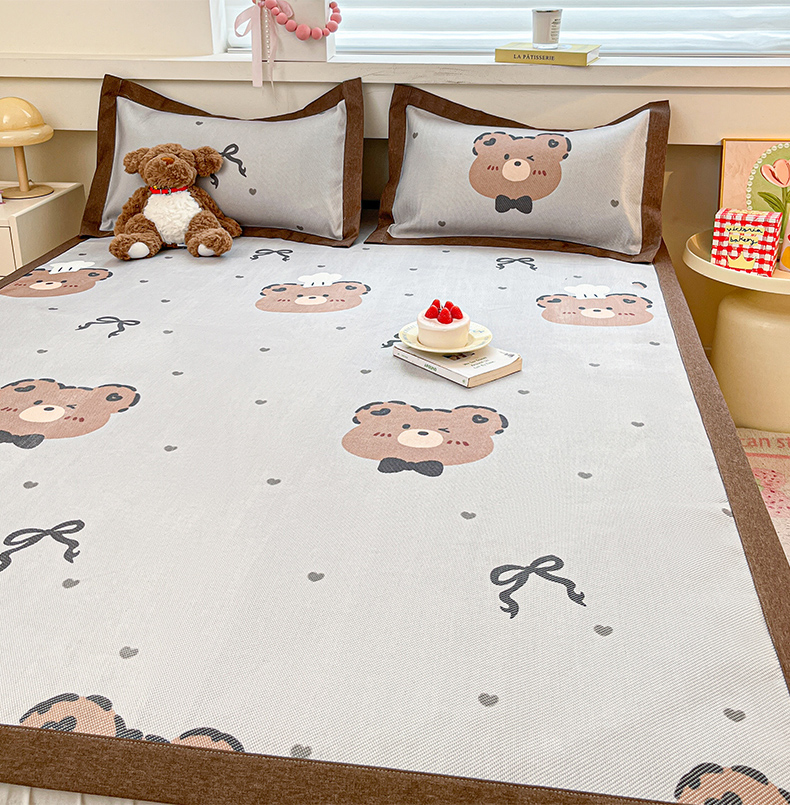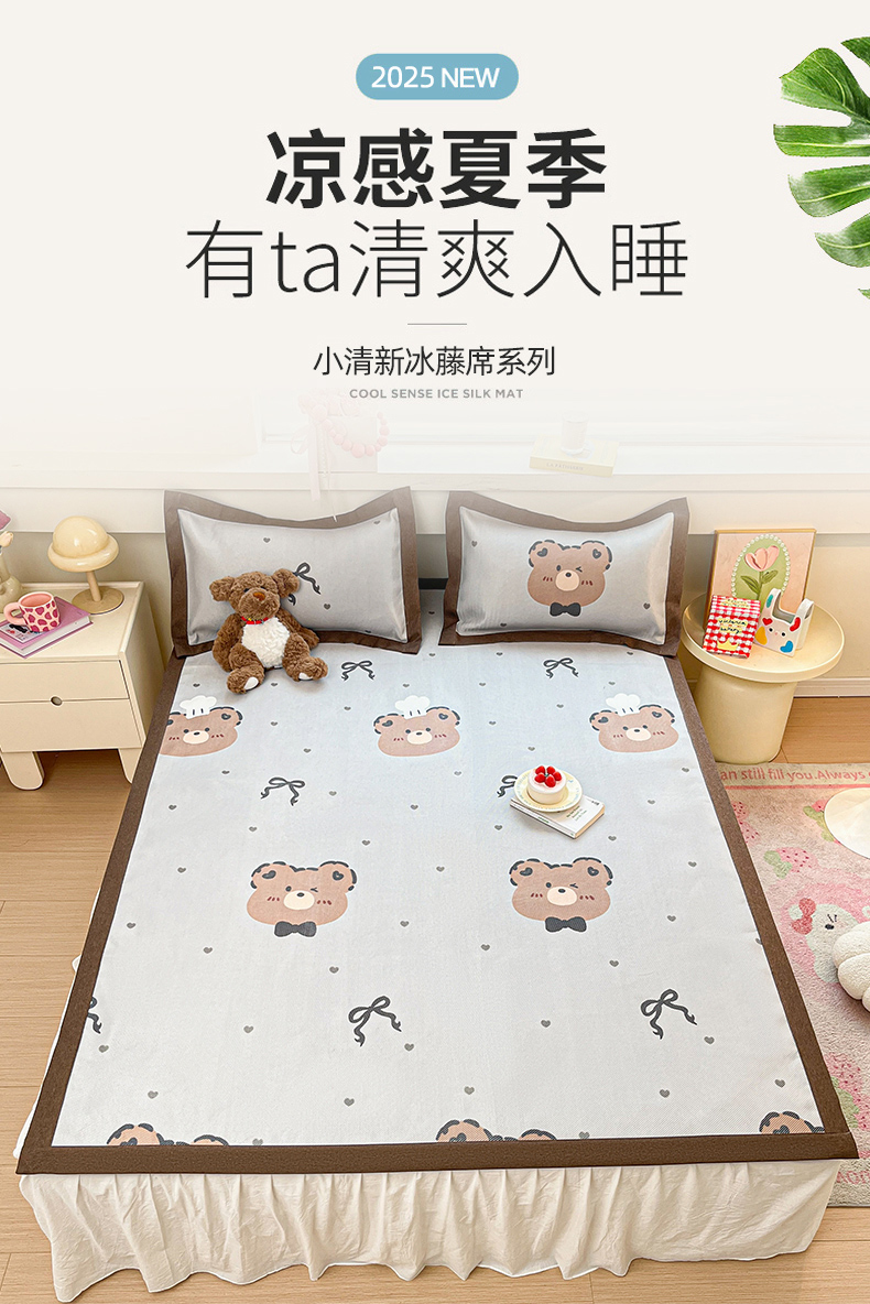 花言狐语 2025新款印花真冰藤冰凉席 爱心熊