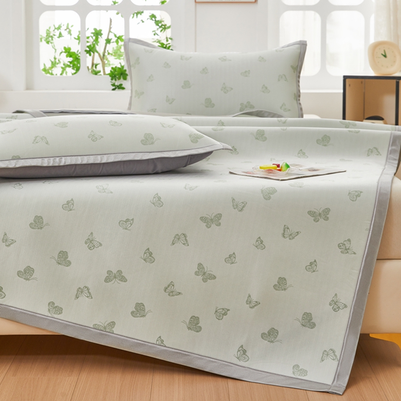 商品名称:曲宿家纺 2025新款高分子色织提花软凉席系列 蝴蝶-果绿