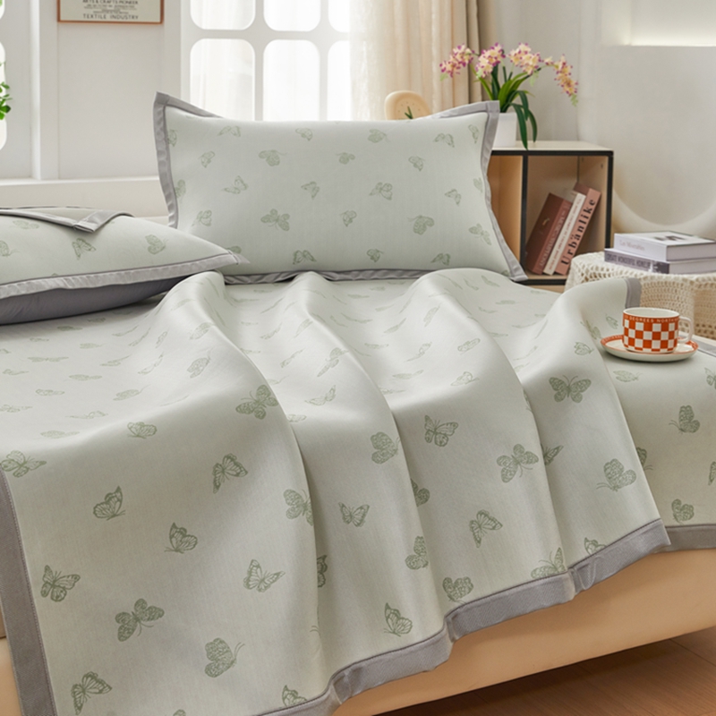 曲宿家纺 2025新款高分子色织提花软凉席系列 蝴蝶-果绿