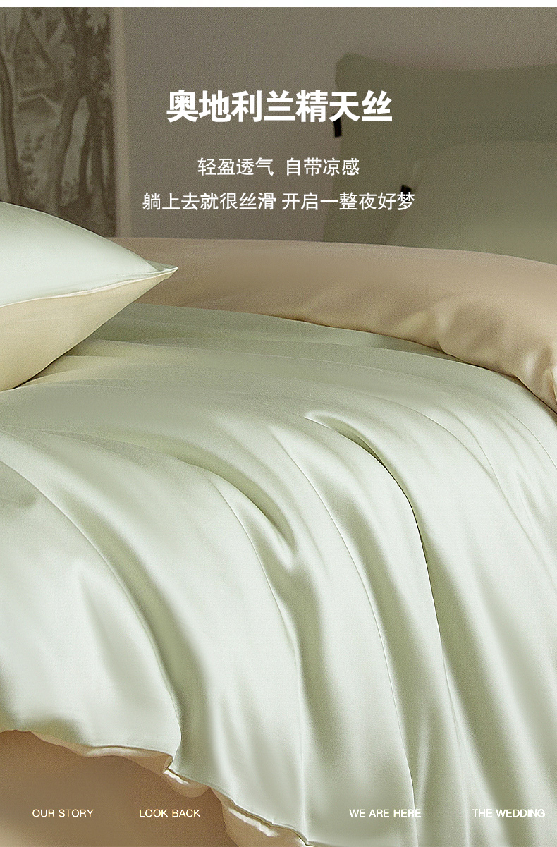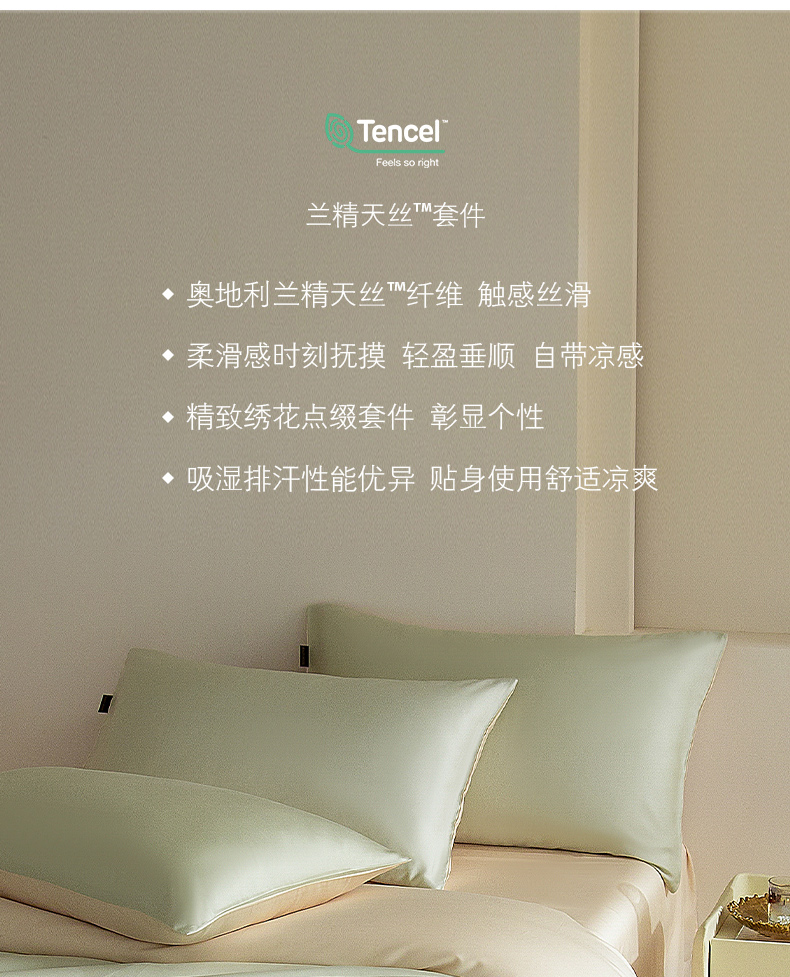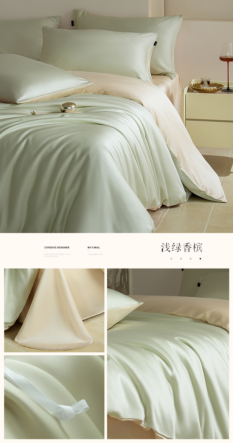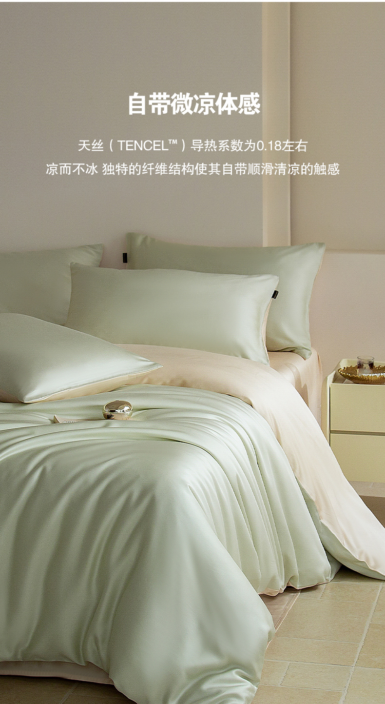当前位置: 91家纺网 > 商品网购 > 床品套件 > 四件套 > 莱赛尔四件套 > 云栖家居 202560支兰精天丝纯拼色四件套 浅绿香槟