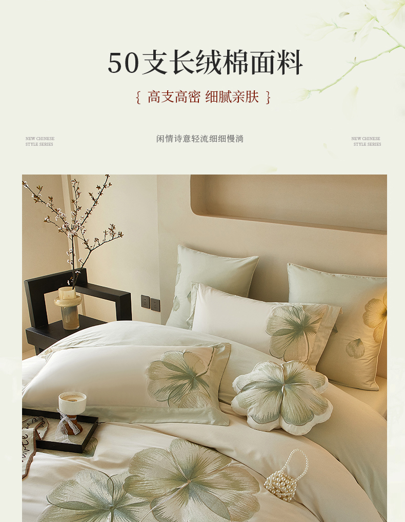 【2025】50支50S长绒棉刺绣四件套新中式工艺款 翩翩起舞 控价478-498元