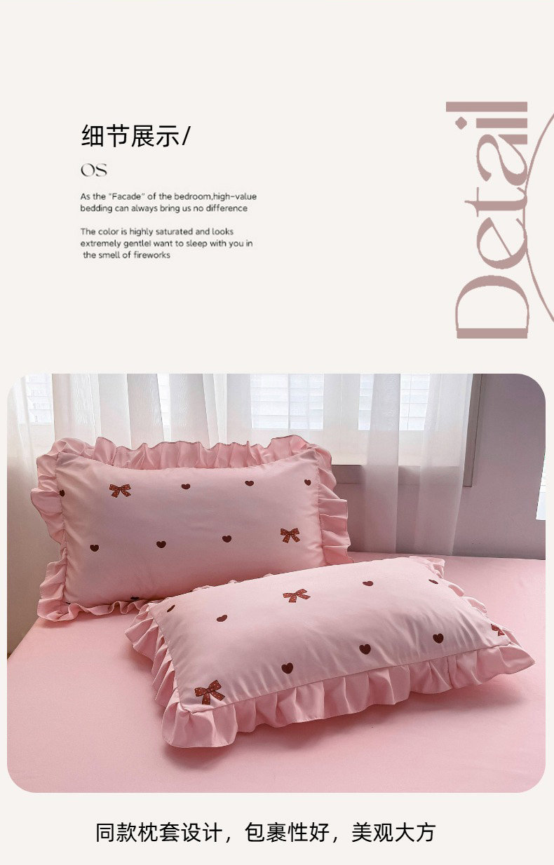 找底底2023新款230g牛奶绒法莱绒刺绣蕾丝边床裙款四件套,豆沙色,橘橙色,玛卡蓝,嫩黄,浅粉色,雾紫,质感灰