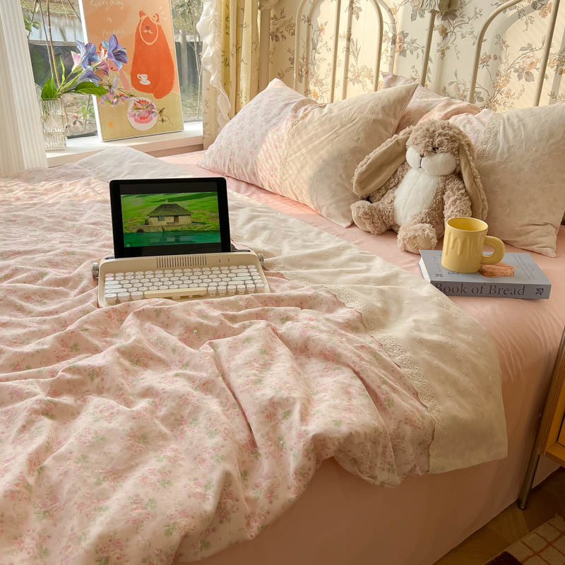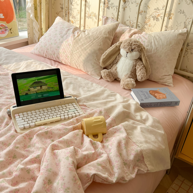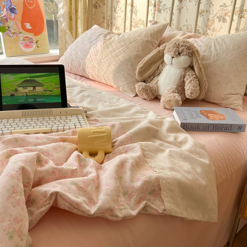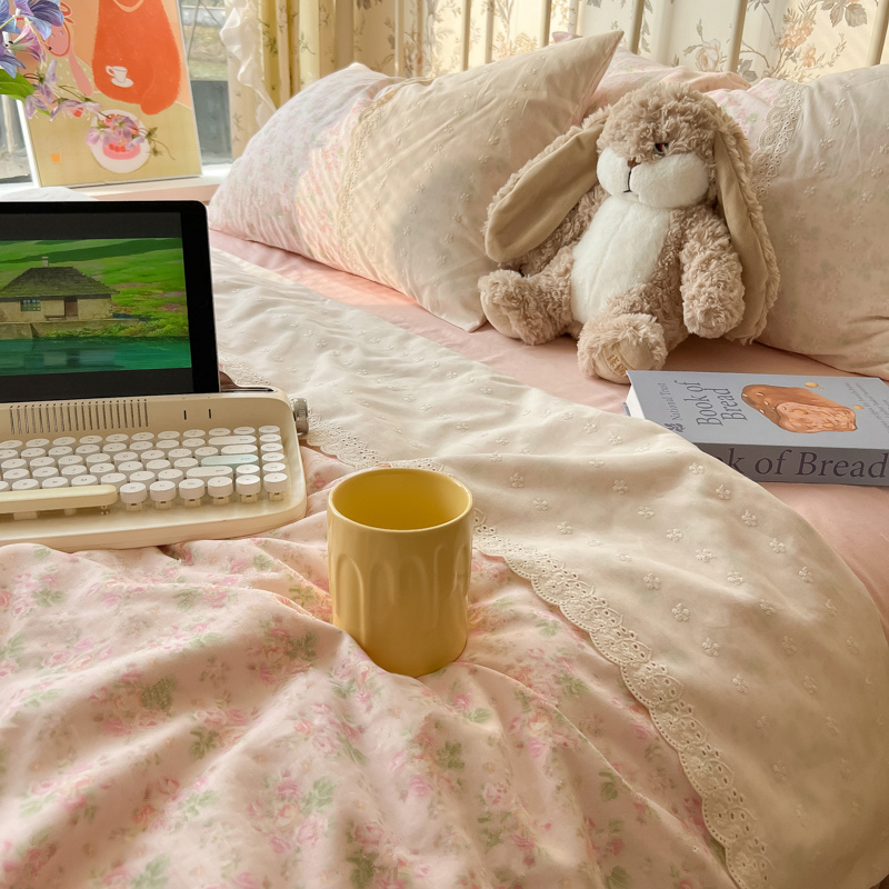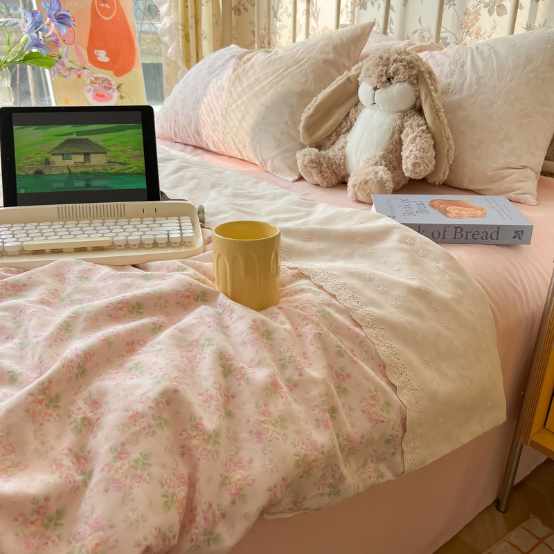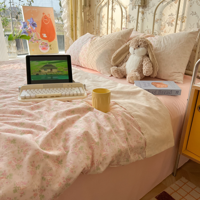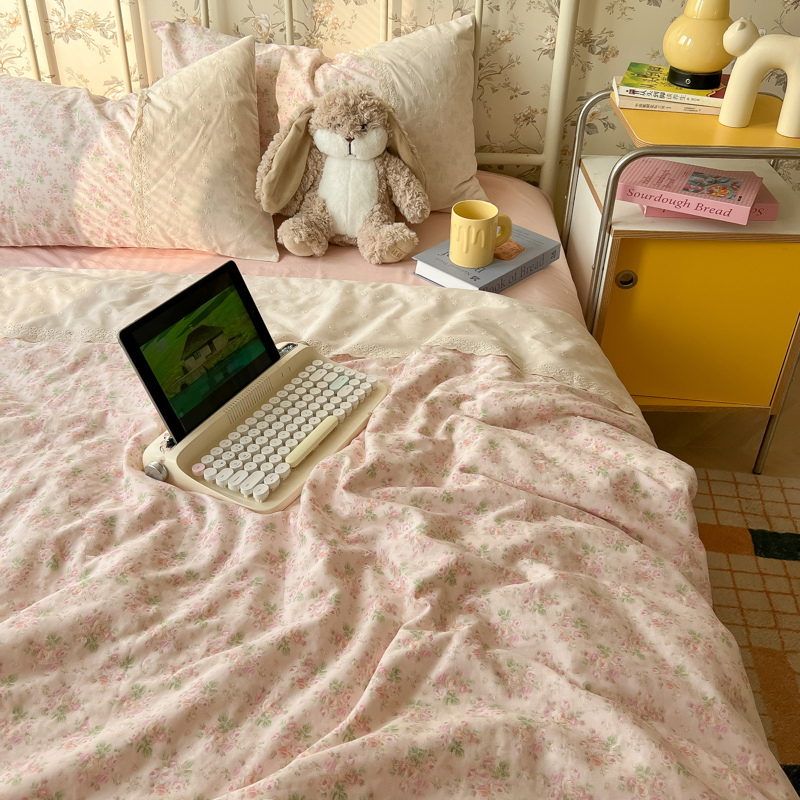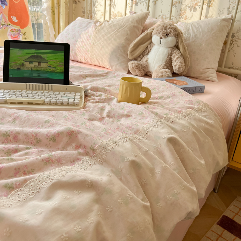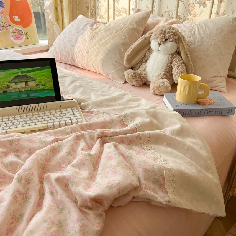 当前位置: 91家纺网 > 商品网购 > 床品套件 > 四件套 > 盼季家纺 新款夏季夏天蕾丝花边大豆纤维被夏凉被床单四件套空调被 蕾丝花边夏被-花前悦夏