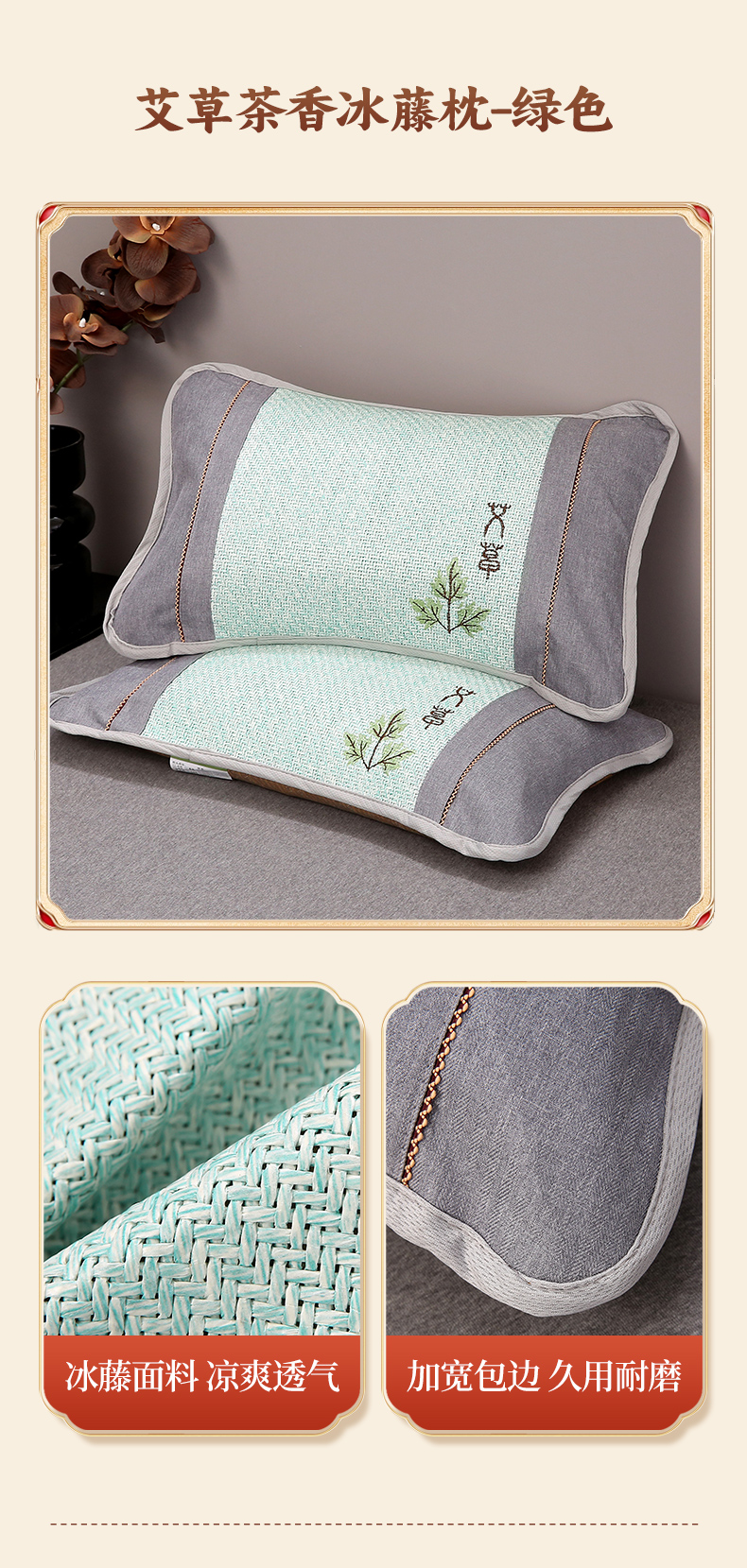 艾草茶香冰藤枕-绿色 35x55cm/只