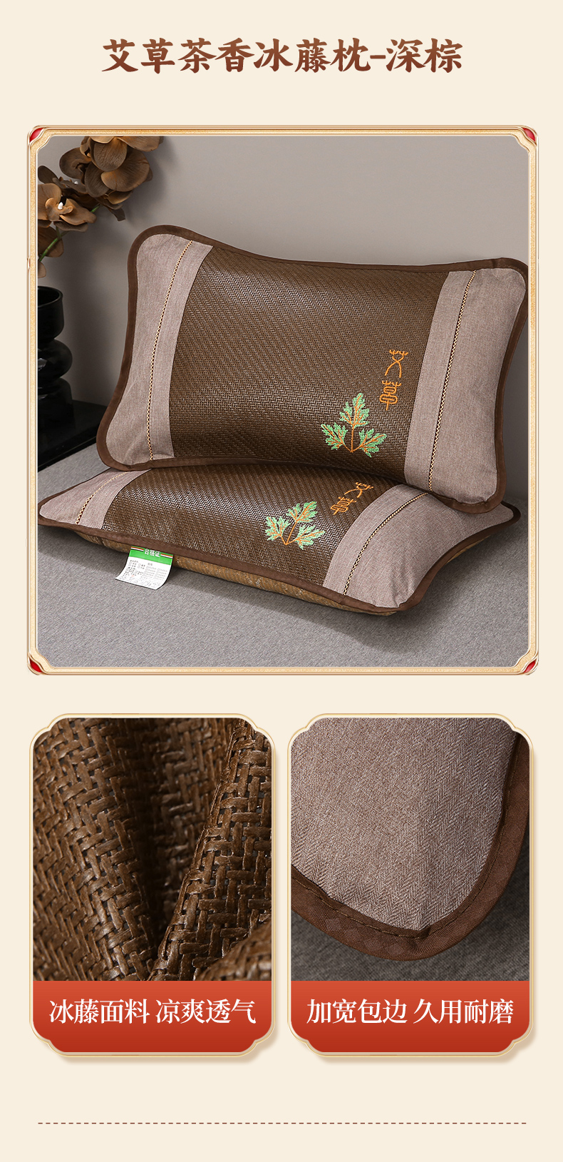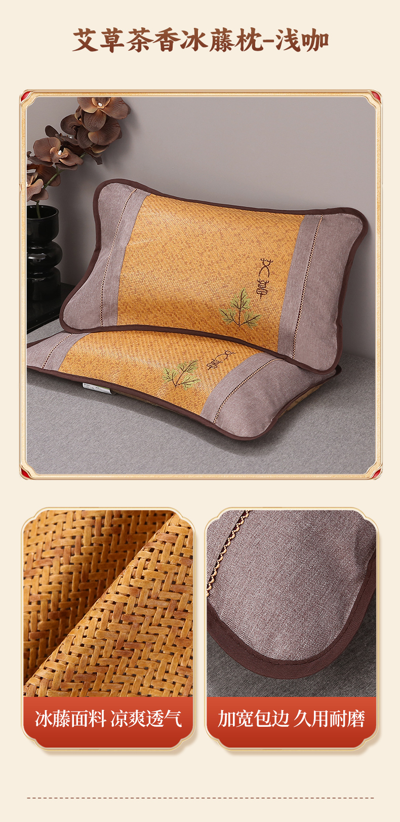 艾草茶香冰藤枕-浅咖 35x55cm/只