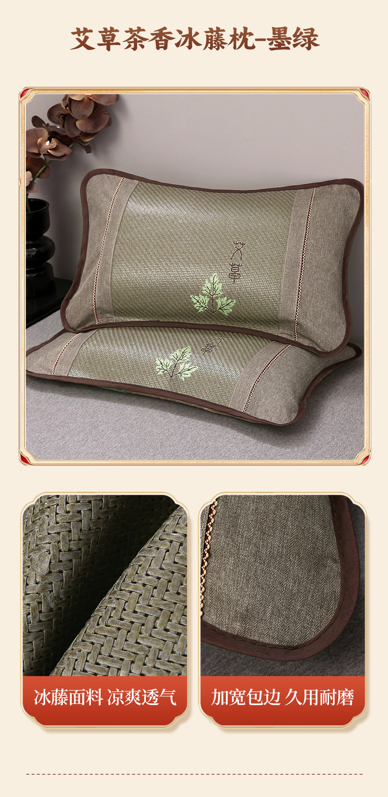 艾草茶香冰藤枕-墨绿 35x55cm/只