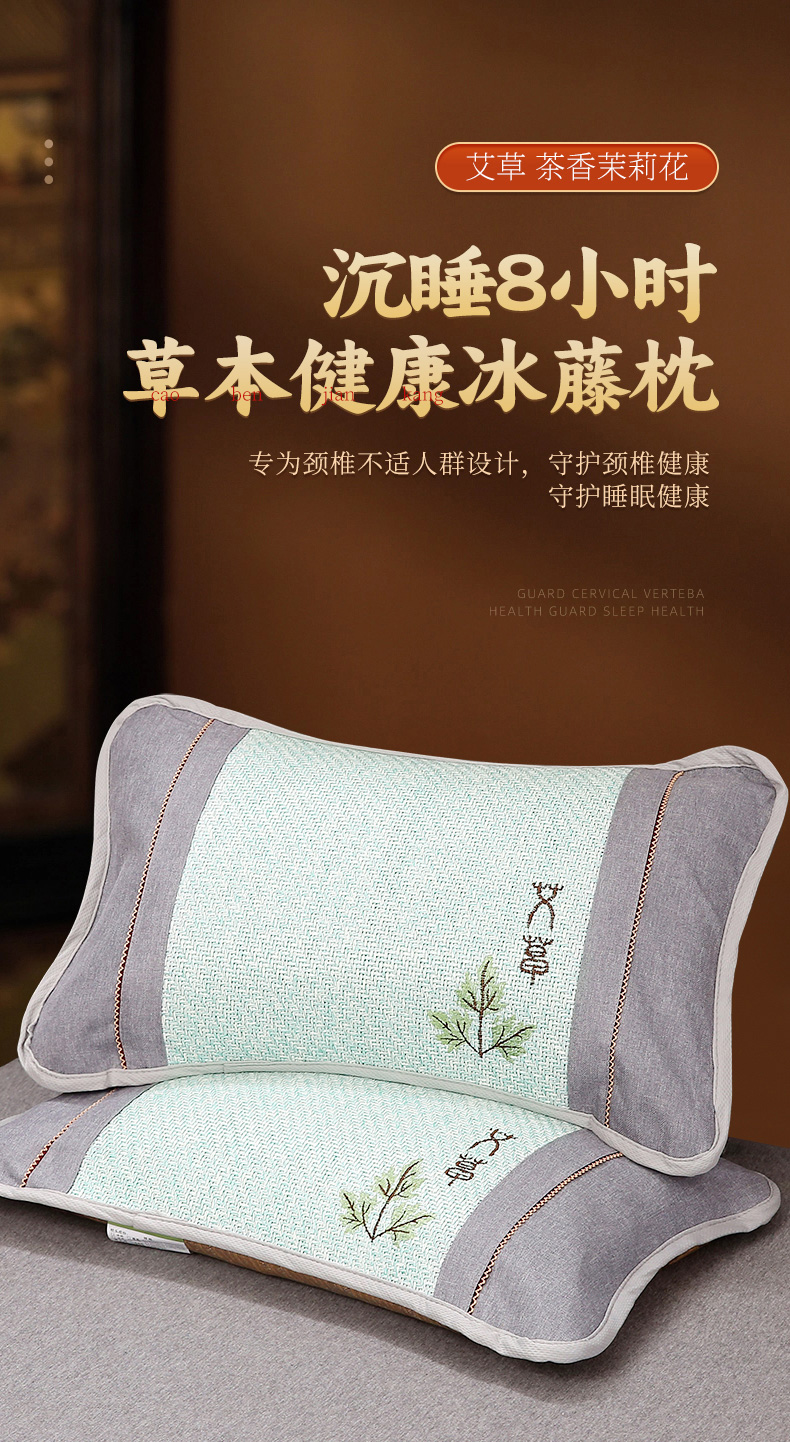 商品名称:(总)纽乐家纺 2025新款夏凉凉感艾草花茶香冰藤枕芯茉莉花助睡眠枕头枕芯