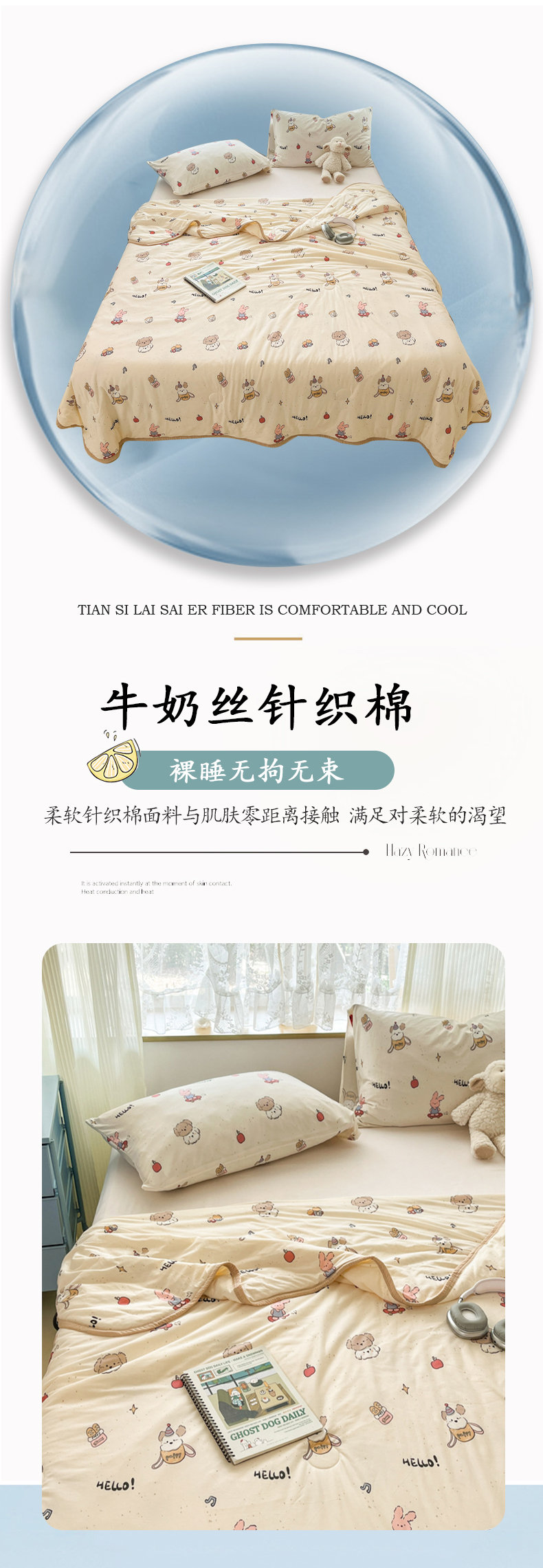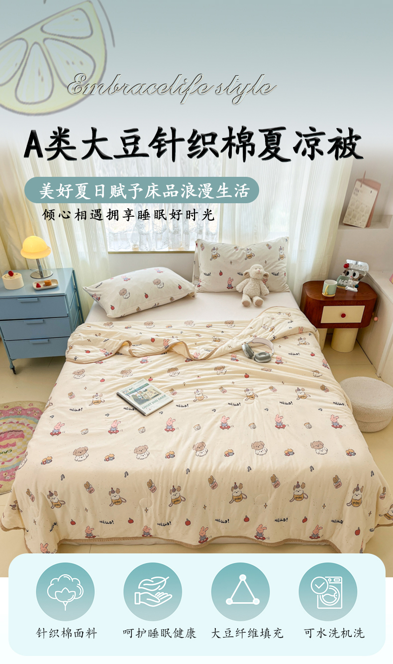 商品名称:葡萄家 2025新款A类母婴级大豆纤维牛奶丝针织棉夏凉被空调被-系列二 你好小狗