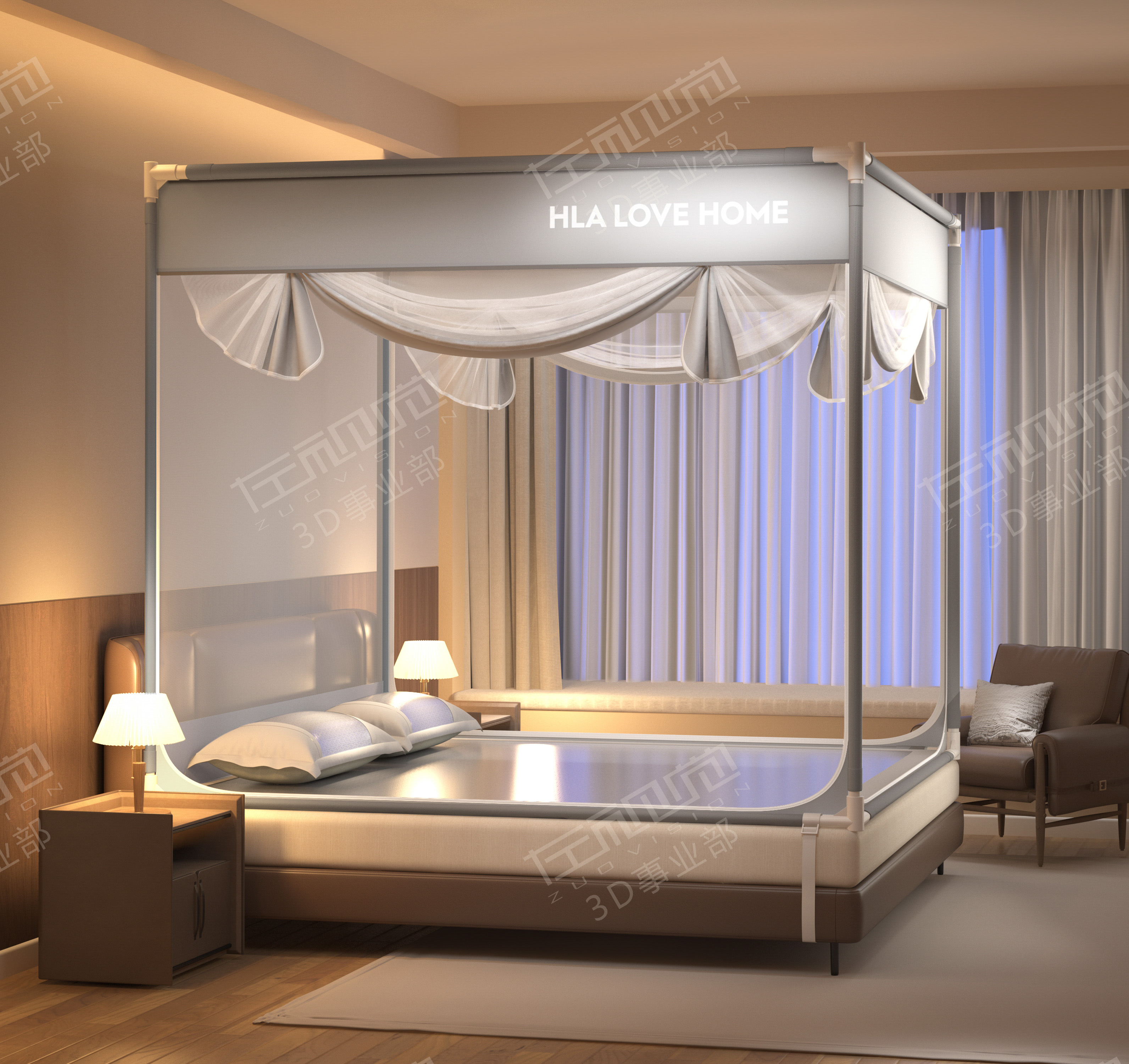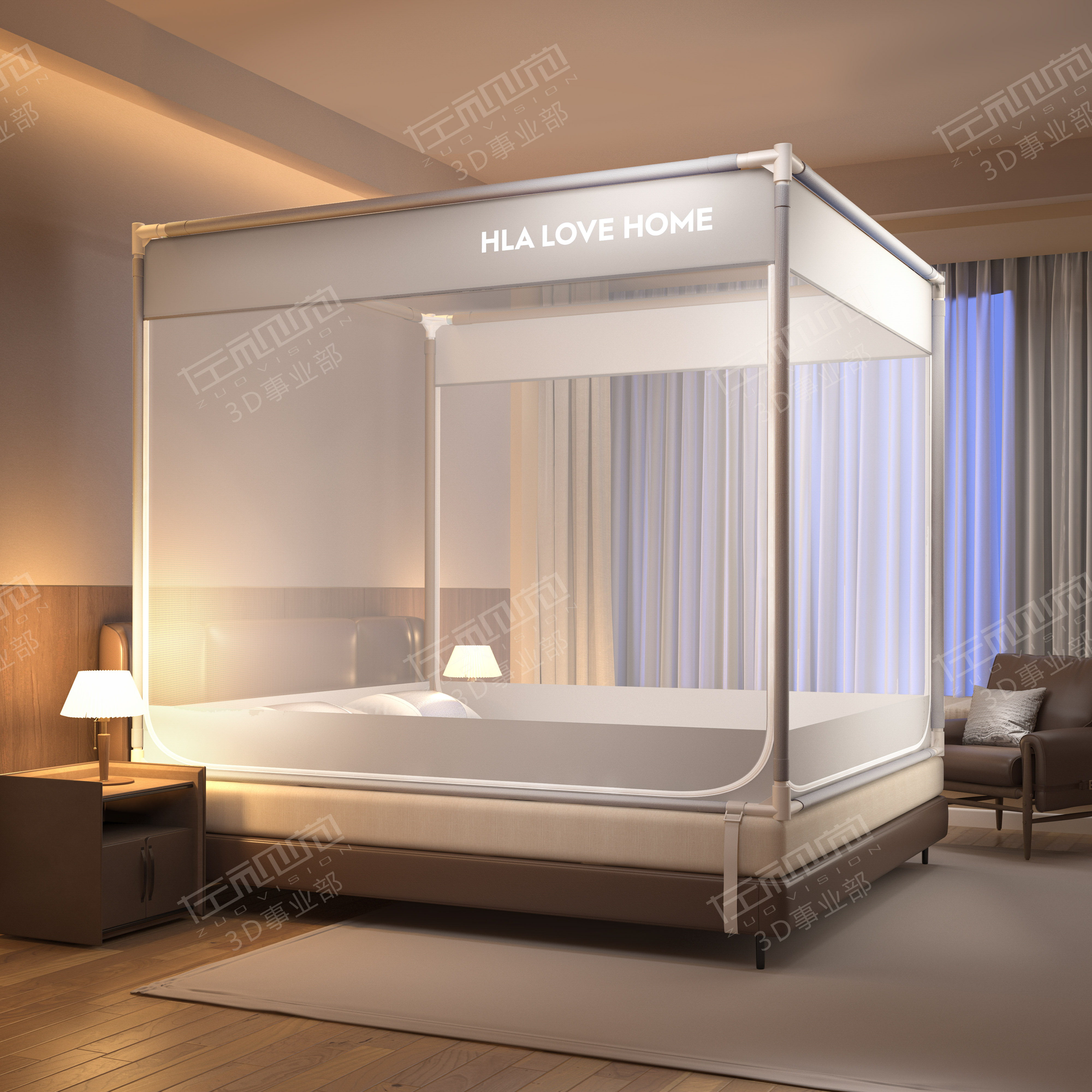 • 91家纺网 家纺一手货源 找家纺 左视觉  3D建模蚊帐拍摄赏析