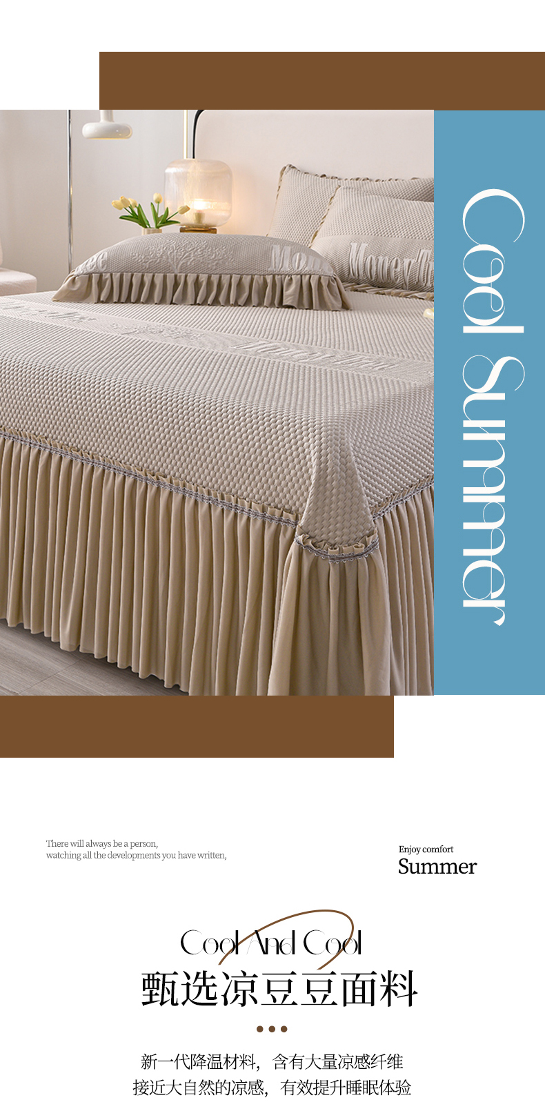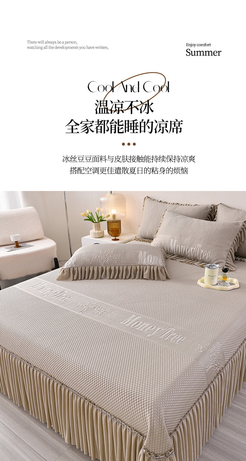 诺梵家纺 2025新款 pe 乙纶立体提花凉豆豆席凉席床裙款【控价1.5米119 ;1.8米129;2.0米139】 金钱树-咖