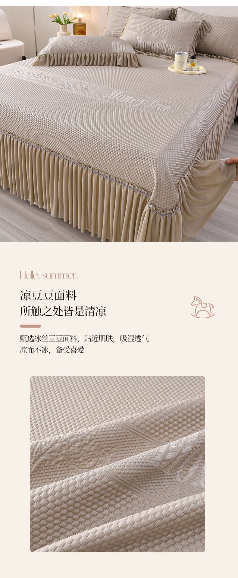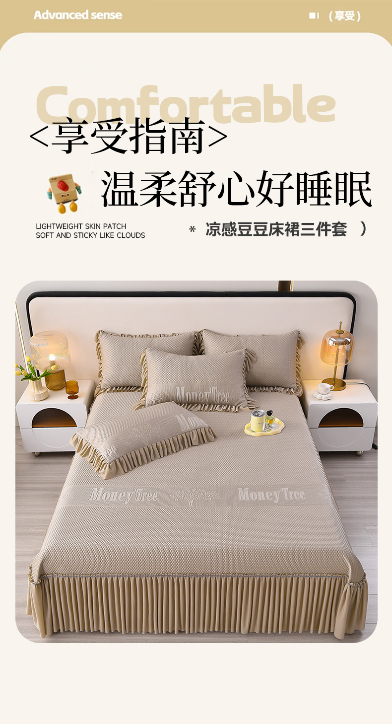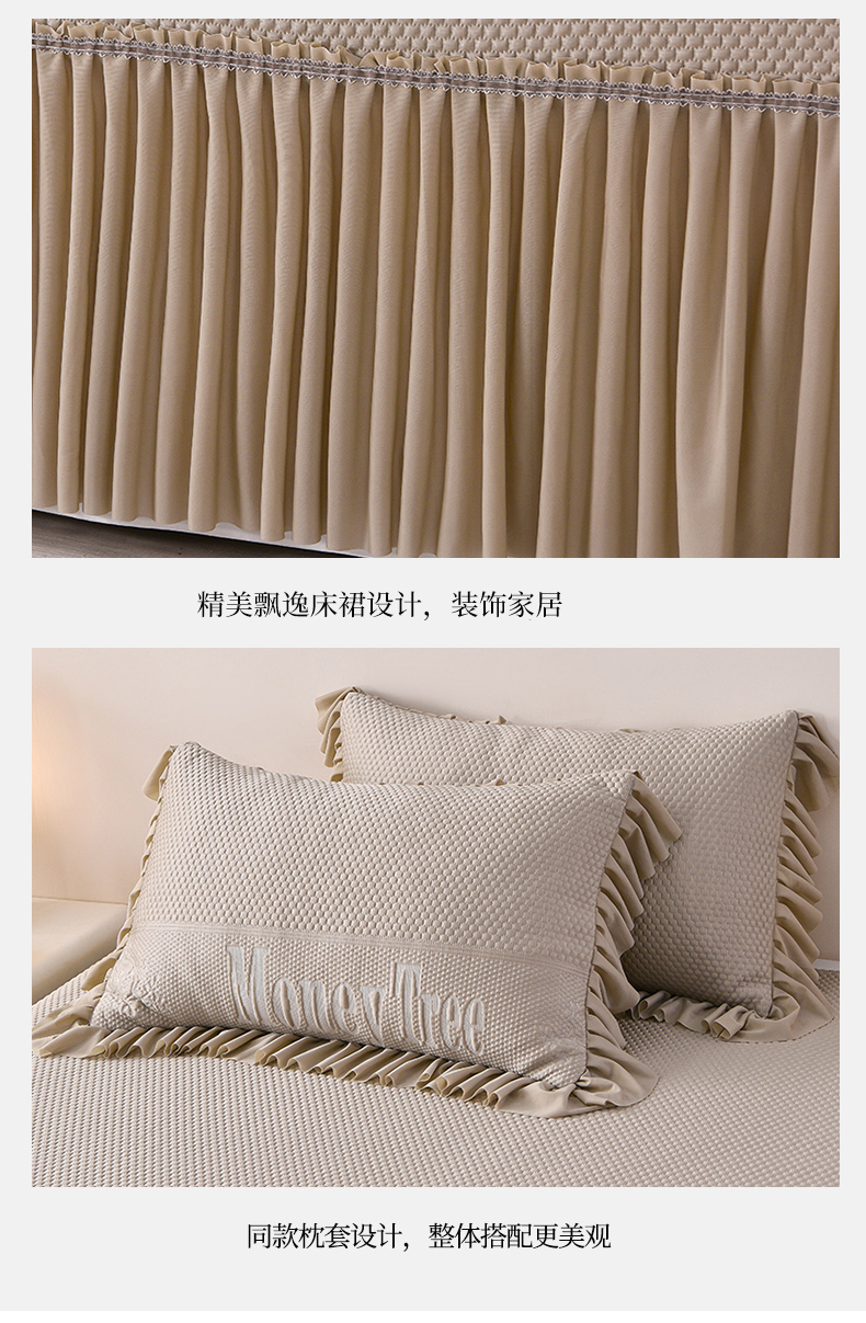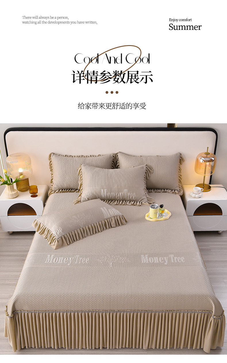 商品名称:诺梵家纺 2025新款 pe 乙纶立体提花凉豆豆席凉席床裙款【控价1.5米119 ;1.8米129;2.0米139】 金钱树-咖