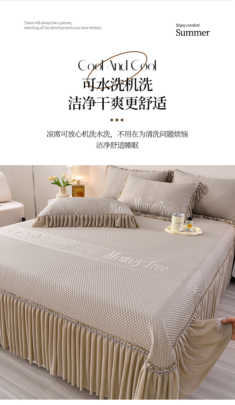 (总)诺梵家纺 2025新款 pe 乙纶立体提花凉豆豆席凉席床裙款【控价1.5米119 ;1.8米129;2.0米139】,花蝶相拥-粉,花蝶相拥-蓝,花蝶相拥-绿,金钱树-灰,金钱树深咖,时尚空间-粉,时尚空间-蓝,幸运草-粉,幸运草-蓝,金钱树-咖