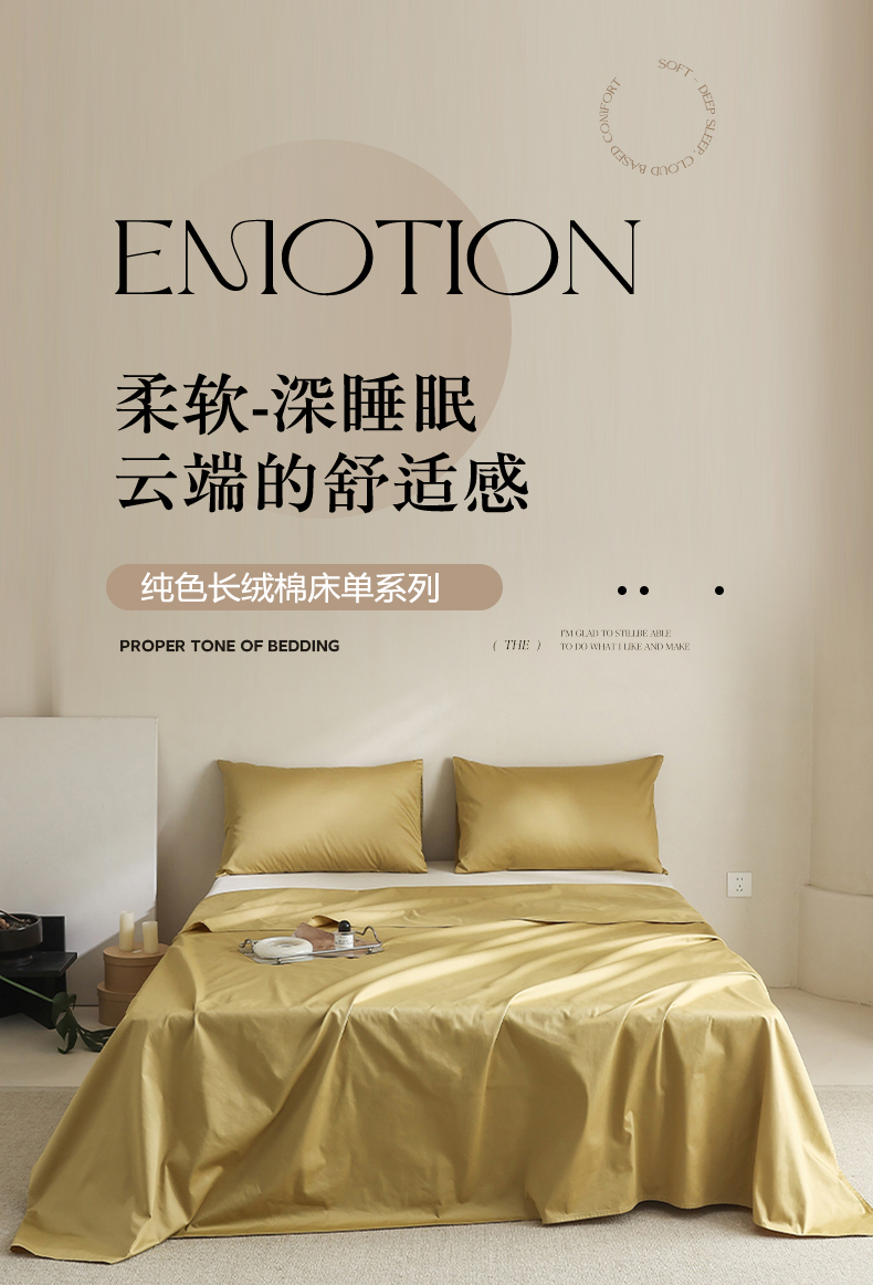 棉眠 2025新款长绒棉纯色单品系列-单床单 芥末黄
