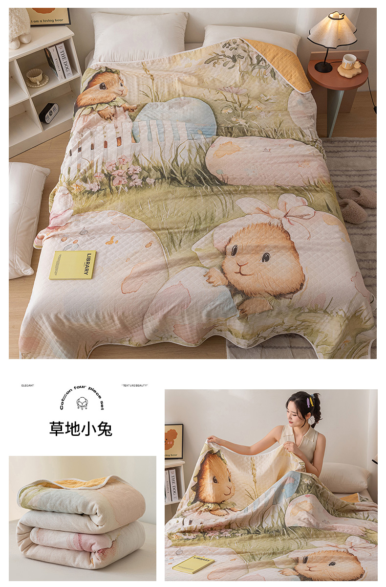 商品名称:乐家毛巾被 2025春夏新款全棉纯棉六层大版印花毛巾被 草地小兔