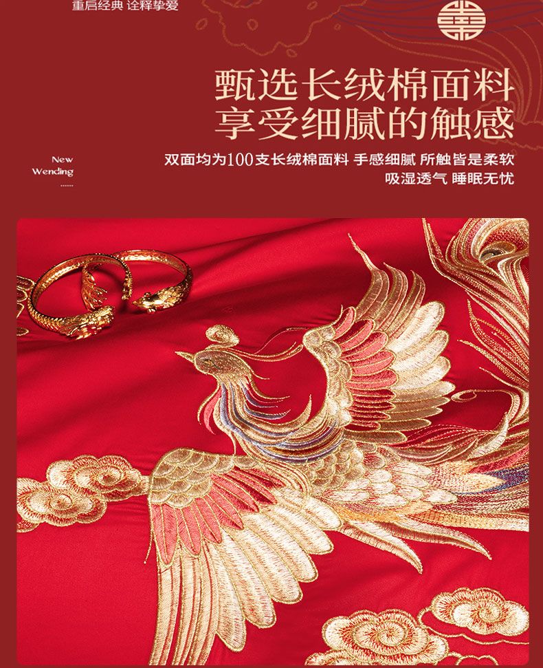 当前位置: 91家纺网 > 商品网购 > 床品套件 > 四件套 > 婚庆四件套 > 蒂爵 2025新款婚庆长绒棉时尚小红书爆款刺绣婚庆四件套多件套280系列 龙凤如意