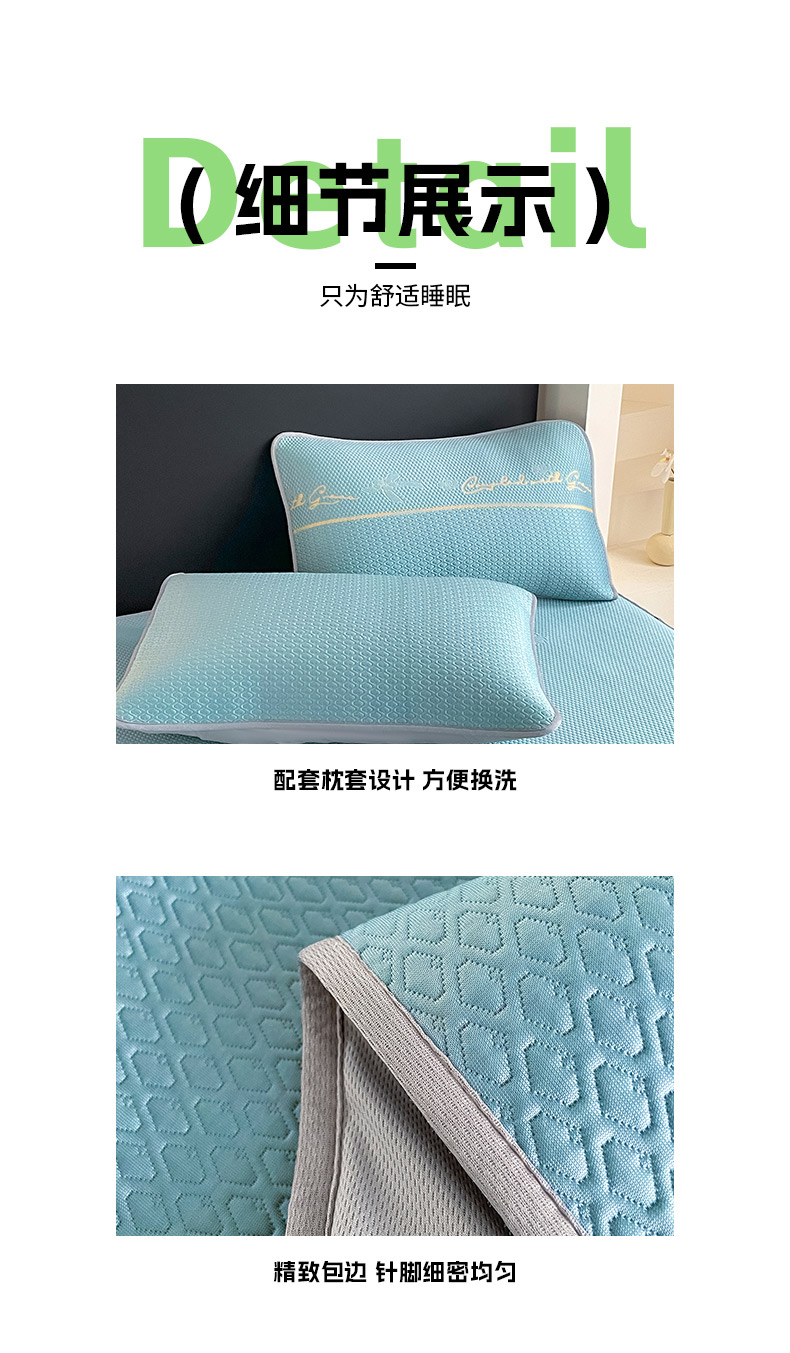 商品名称:(总)欧邦 2025新款提花冰豆豆凉席三件套-幸运草