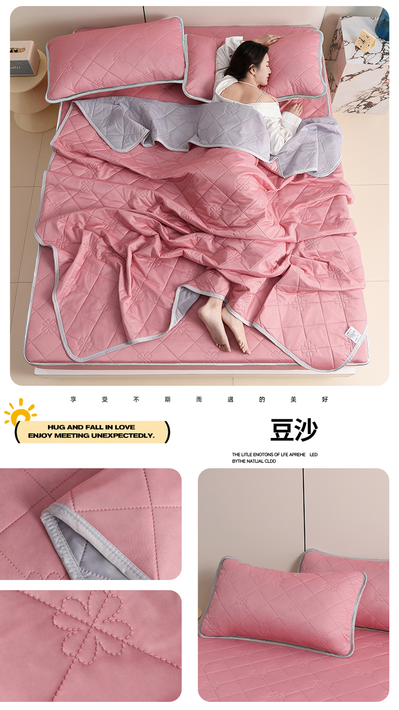 • 91家纺网 家纺一手货源 找家纺 2025新款清凉舒适凉感丝夏被四件套 豆沙