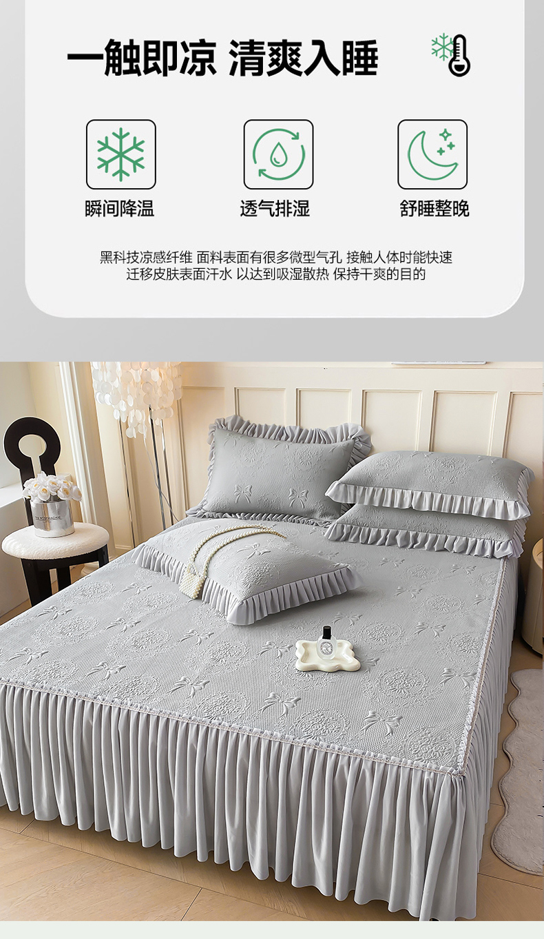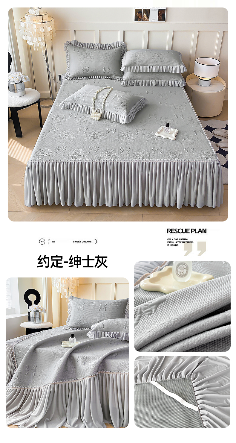 商品名称:2025新款复合三明治床裙款凉豆豆凉席三件套系列 约定-绅士灰