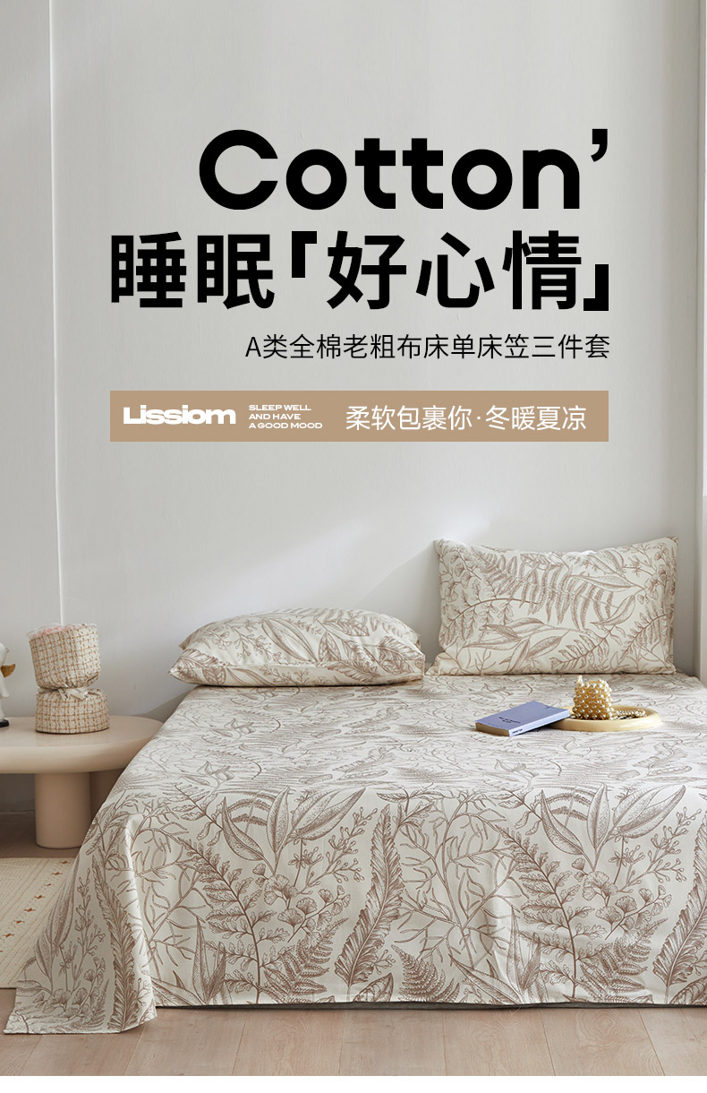 当前位置: 91家纺网 > 商品网购 > 床品套件 > 三件套 > 怡家居 2025新款全棉老粗布床单床笠三件套 云锦-咖