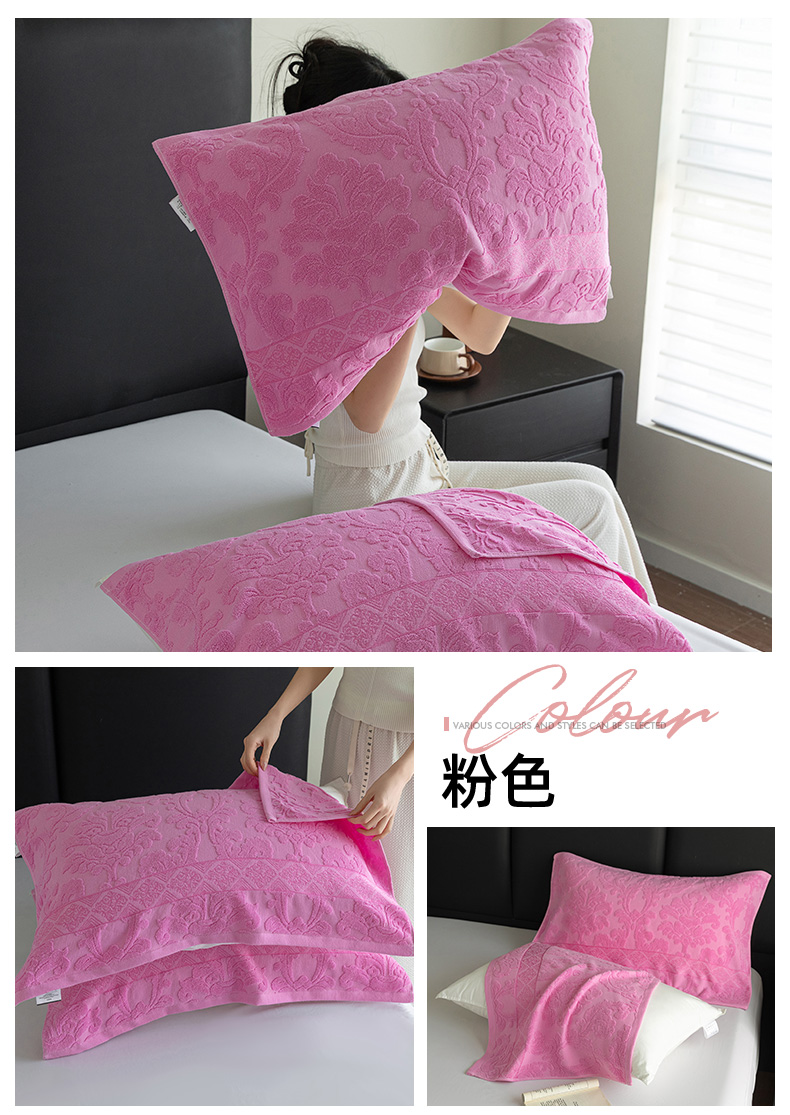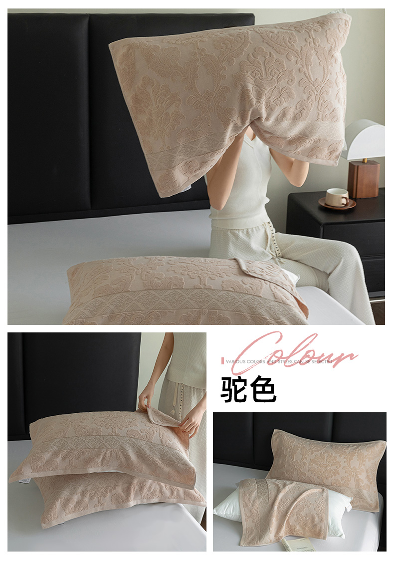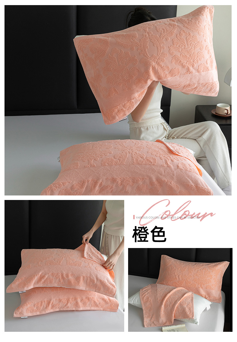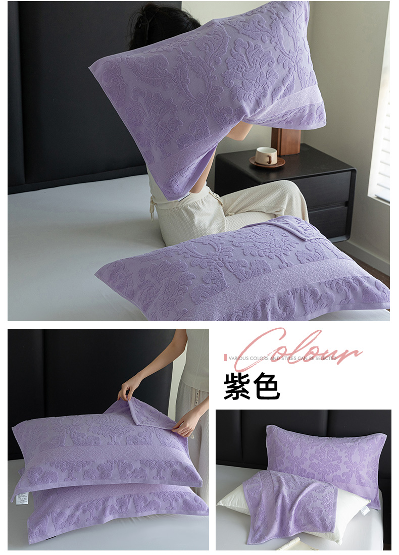 (总)乐家毛巾被(工厂自产自销) 2025新款纯棉浮雕老式枕巾,墨绿色,粉色,米白,橙色,紫色,深蓝色,浅蓝色,驼色,夕阳红,豆沙色,简约灰