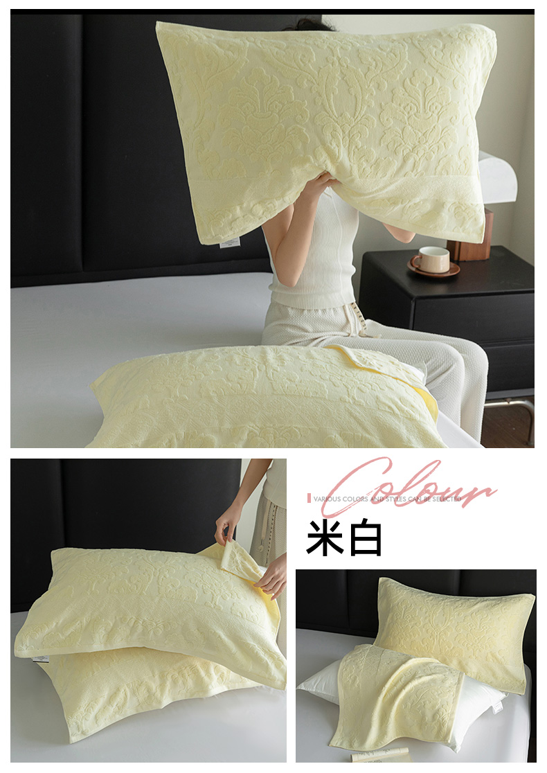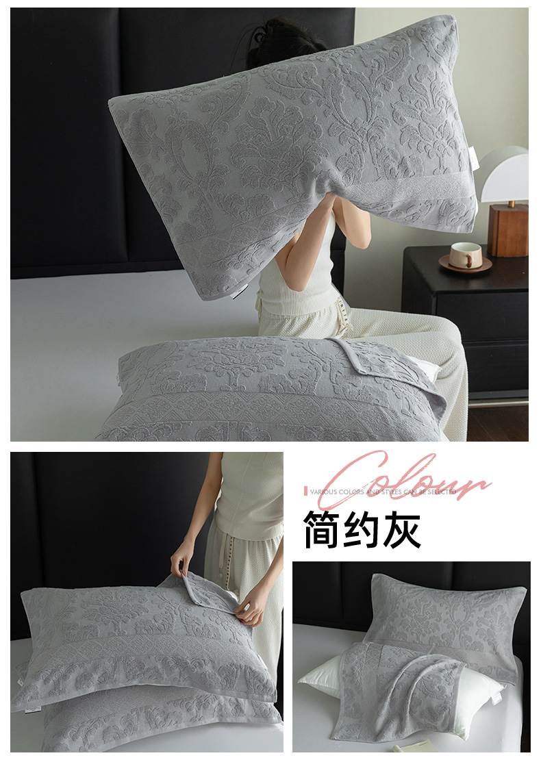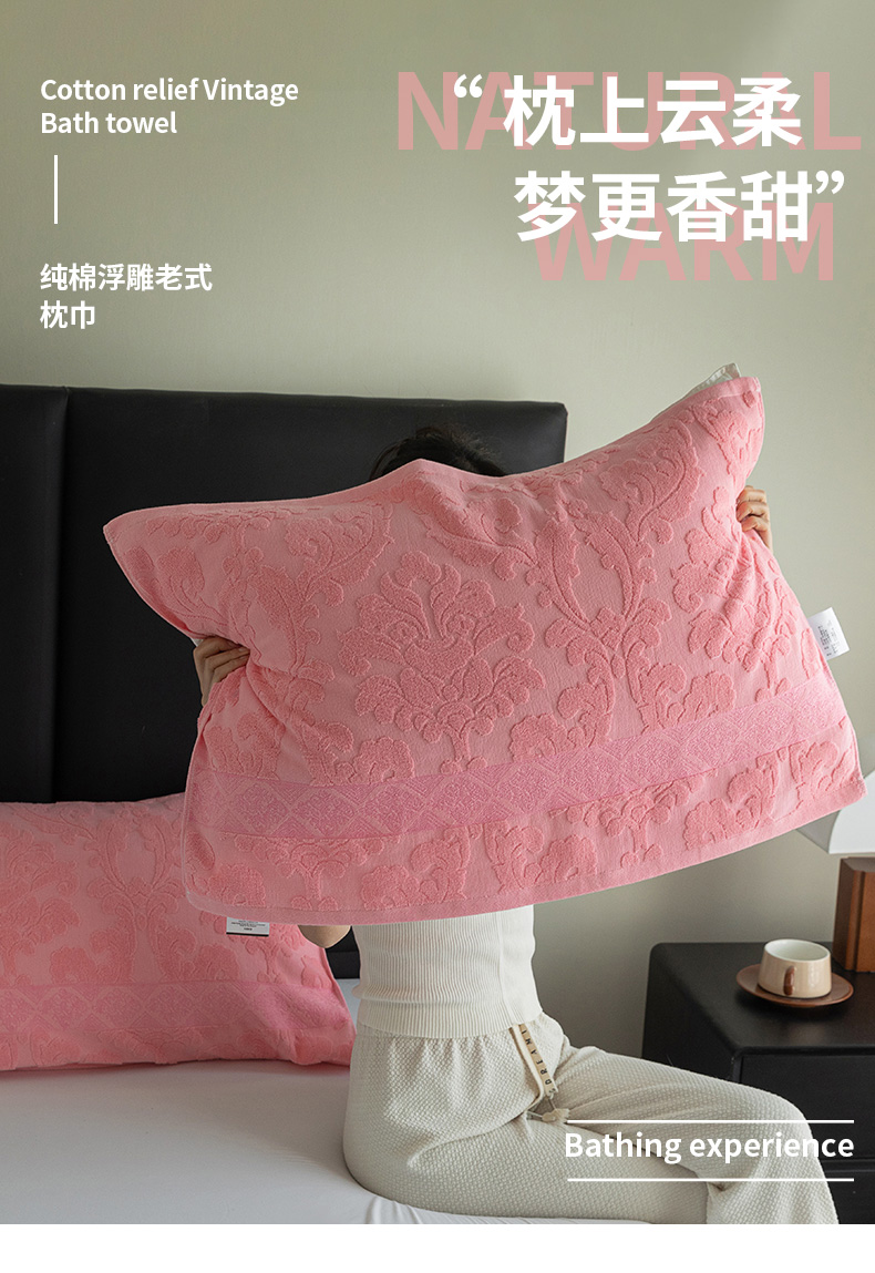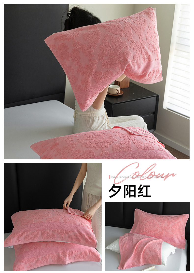 (总)乐家毛巾被(工厂自产自销) 2025新款纯棉浮雕老式枕巾,墨绿色,粉色,米白,橙色,紫色,深蓝色,浅蓝色,驼色,夕阳红,豆沙色,简约灰