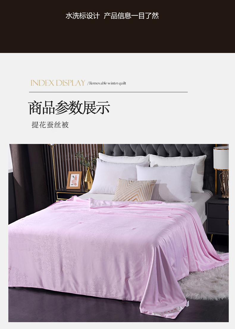 商品名称:鑫田家纺 2025新款100%桑蚕丝填充蚕丝被夏凉被高档提花面料 粉色