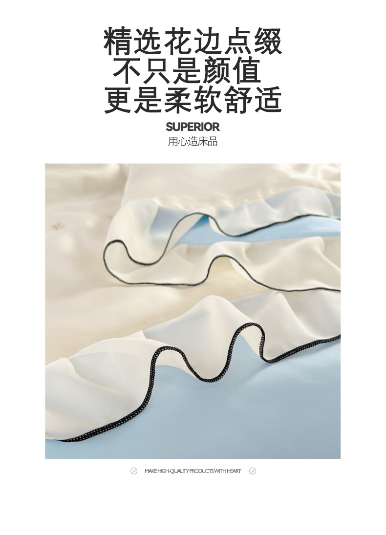 商品名称:圣比熊 2025新款水洗真丝花边枕套凉感枕头套夏天薄款枕芯套 奶油浅蓝