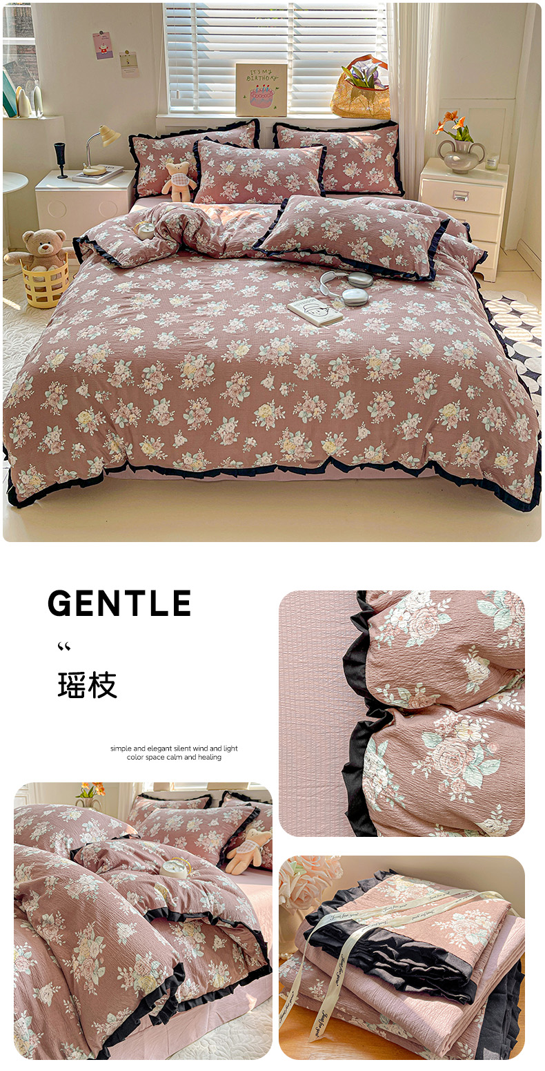当前位置: 91家纺网 > 商品网购 > 床品套件 > 四件套 > 其它四件套 > 优选良品 2025新款直播热款赫本风皱皱双层纱花边款针织皱皱纱法式印花吊边床单三件套床笠四件套 瑶枝