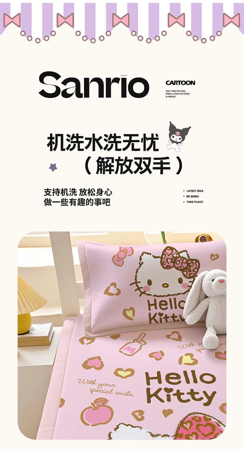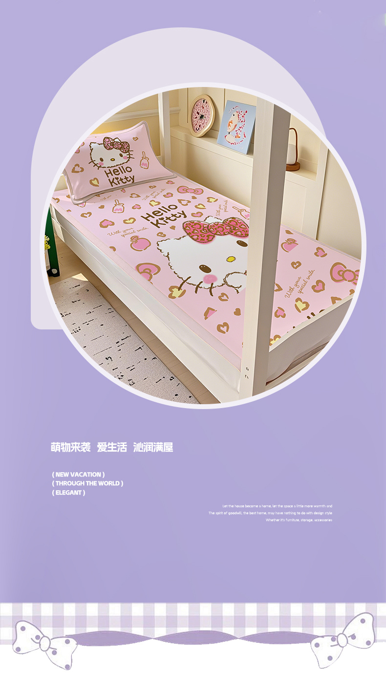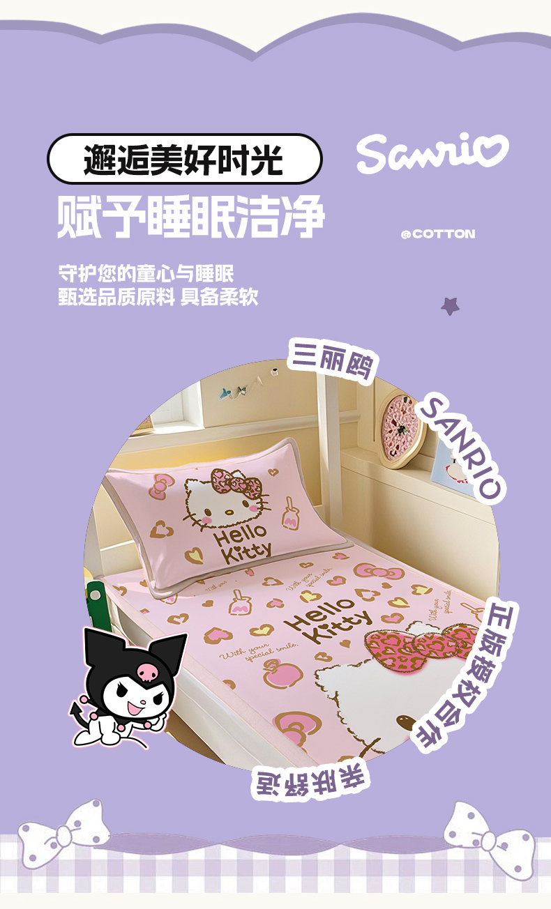 商品名称:博雅 2025春夏新款学生宿舍床三丽鸥冰丝凉席席子 甜酷KT