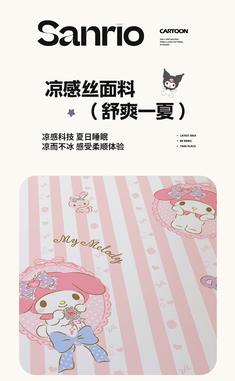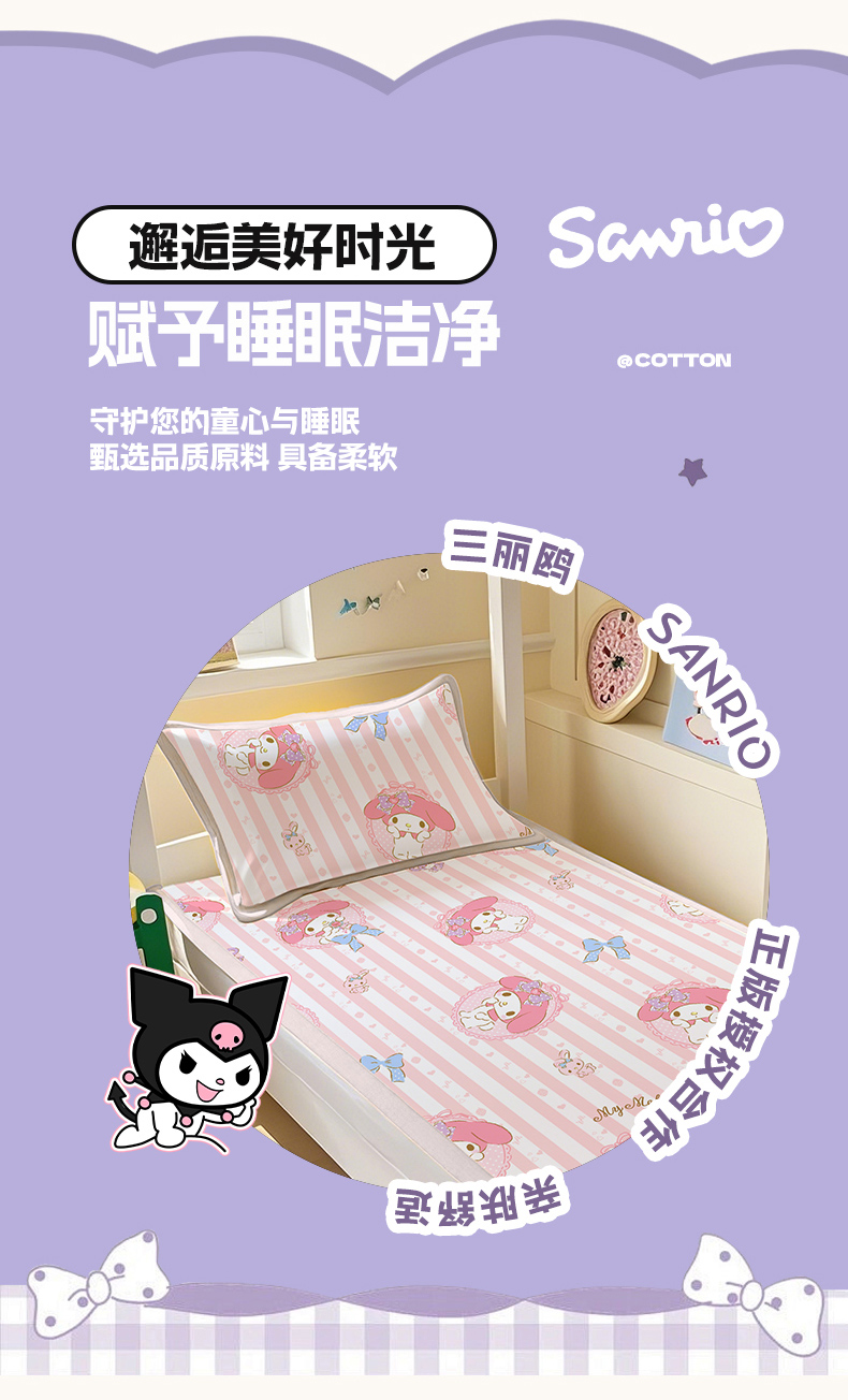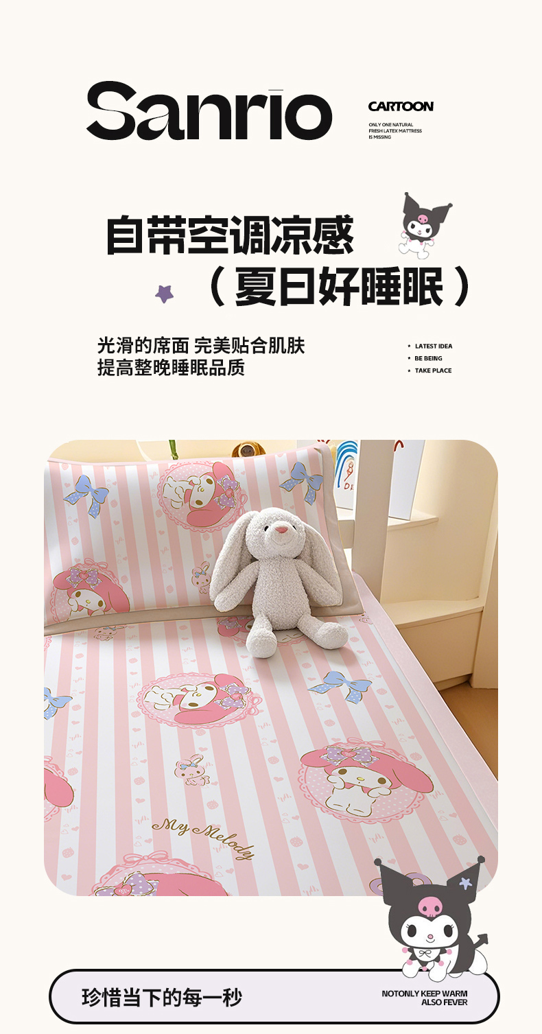 商品名称:博雅 2025春夏新款学生宿舍床三丽鸥冰丝凉席席子 甜甜美乐蒂