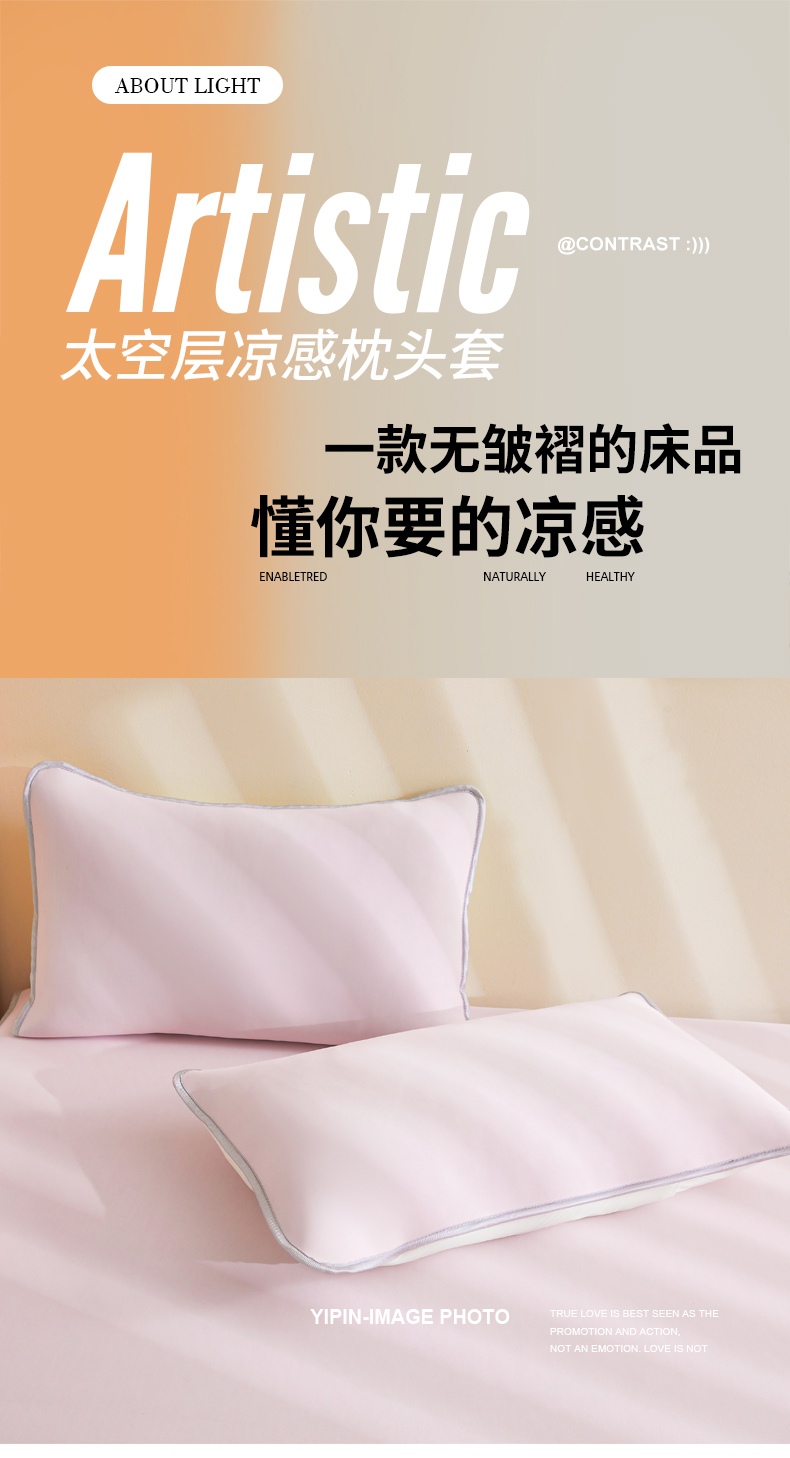 商品名称:LIFE.丽芙 2025春夏新款独家研发太空层凉感冰丝枕头套素色包边款 樱花粉