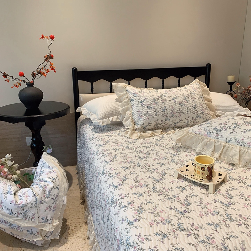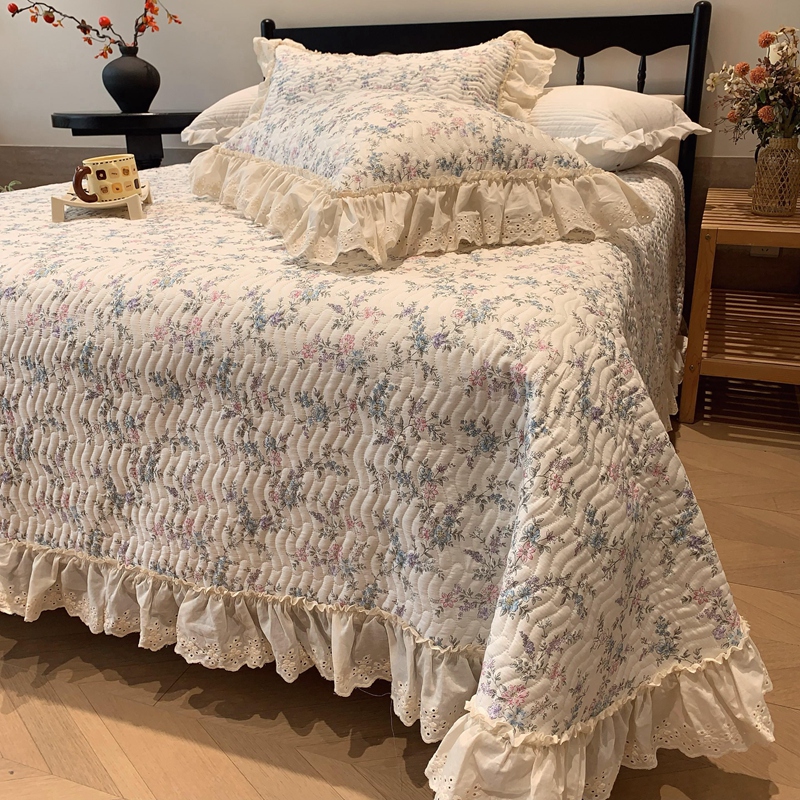 莱豫家纺 2025春夏新款纯棉全棉花边款床盖三件套 夏梦