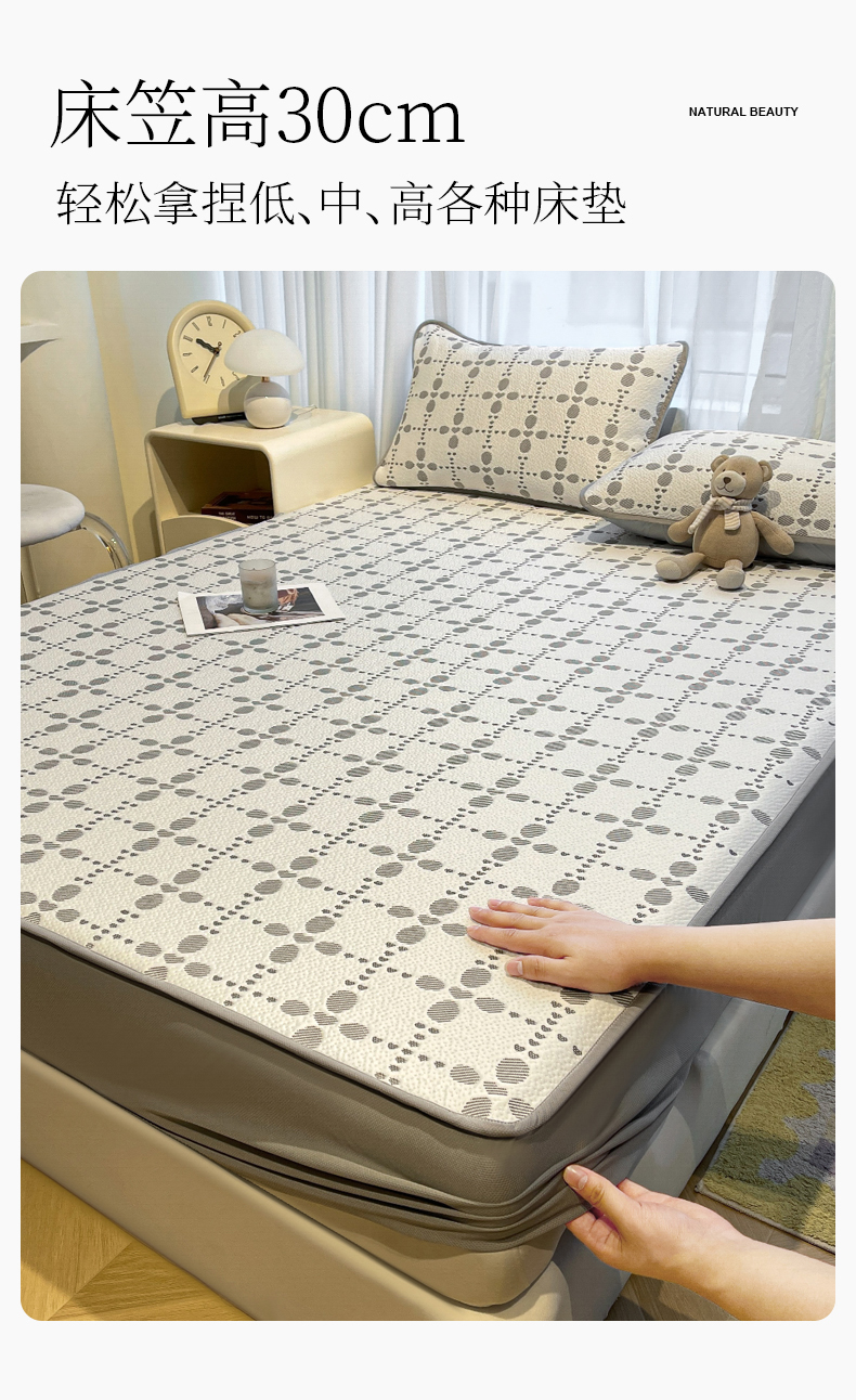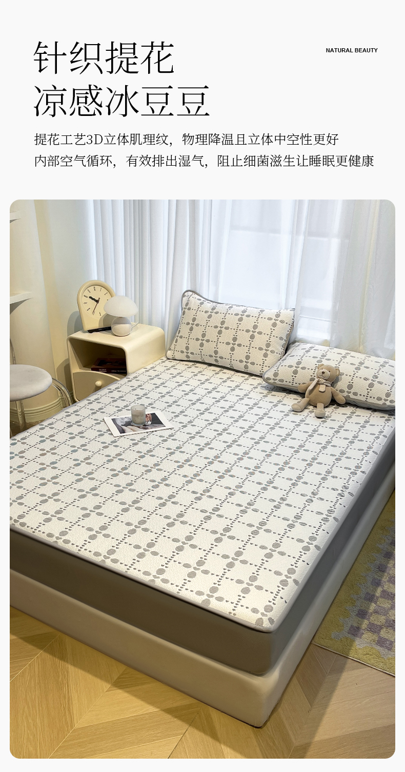 当前位置: 91家纺网 > 商品网购 > 床上用品 > 凉席 > 其他凉席 > LIFE.丽芙 2025春夏季新品A类针织提花冰凉豆豆凉感软席床笠三件套加厚冰丝凉席床罩单件(450克)-风格二 维塔-灰