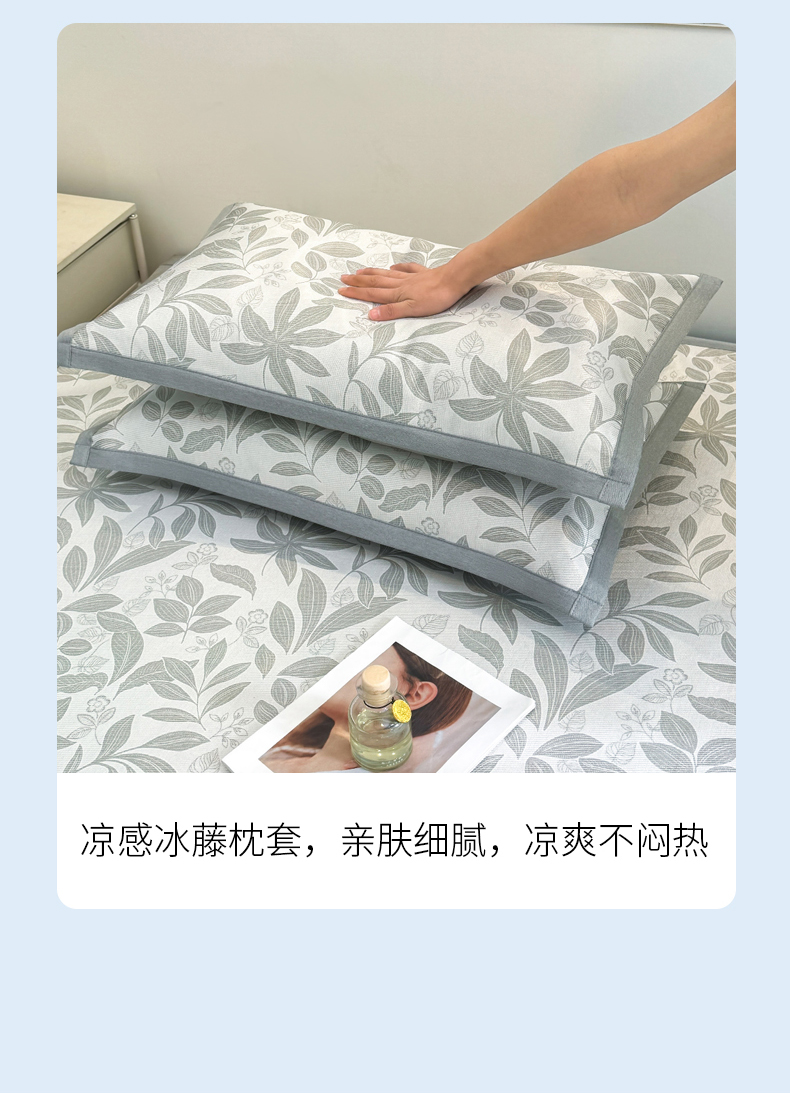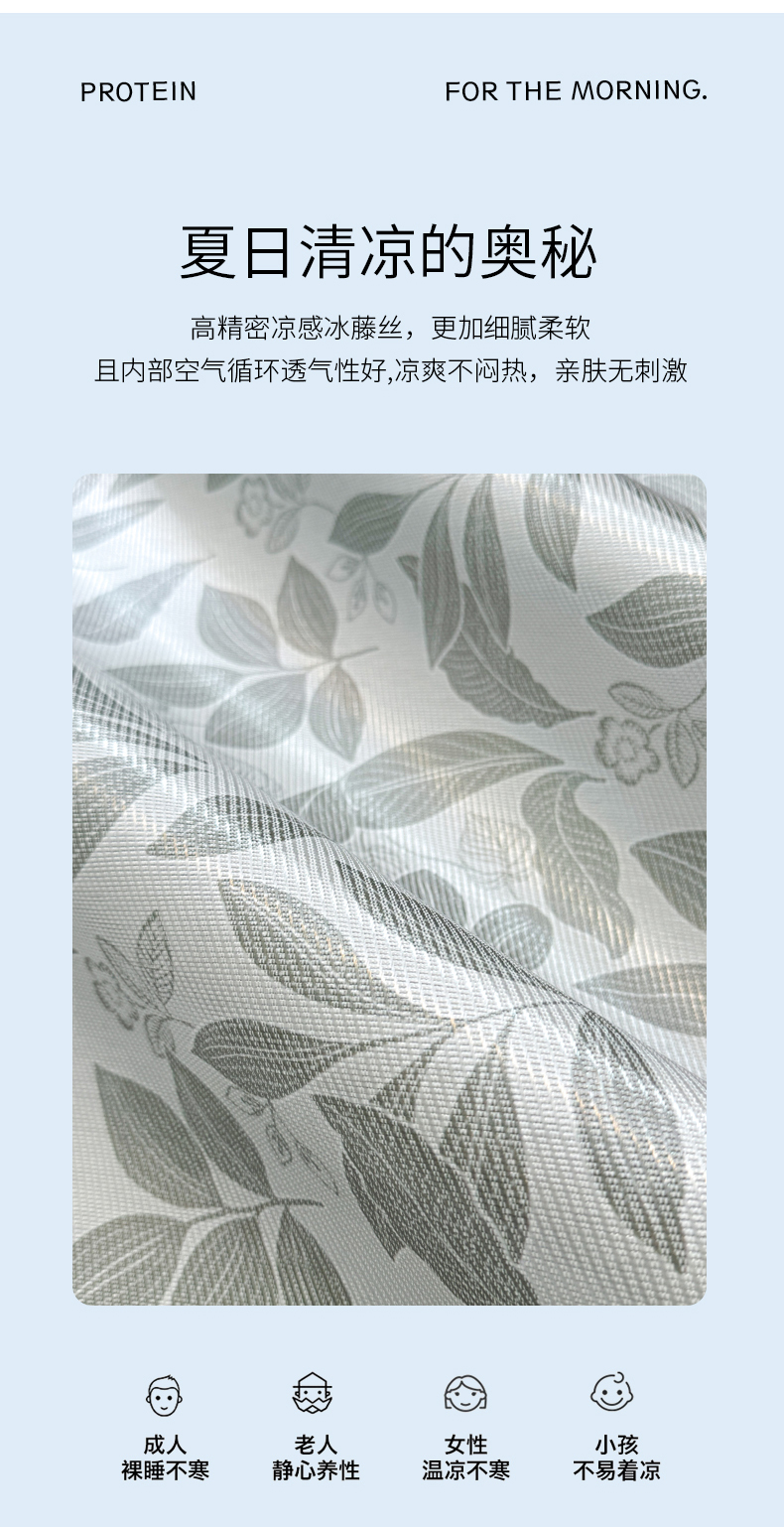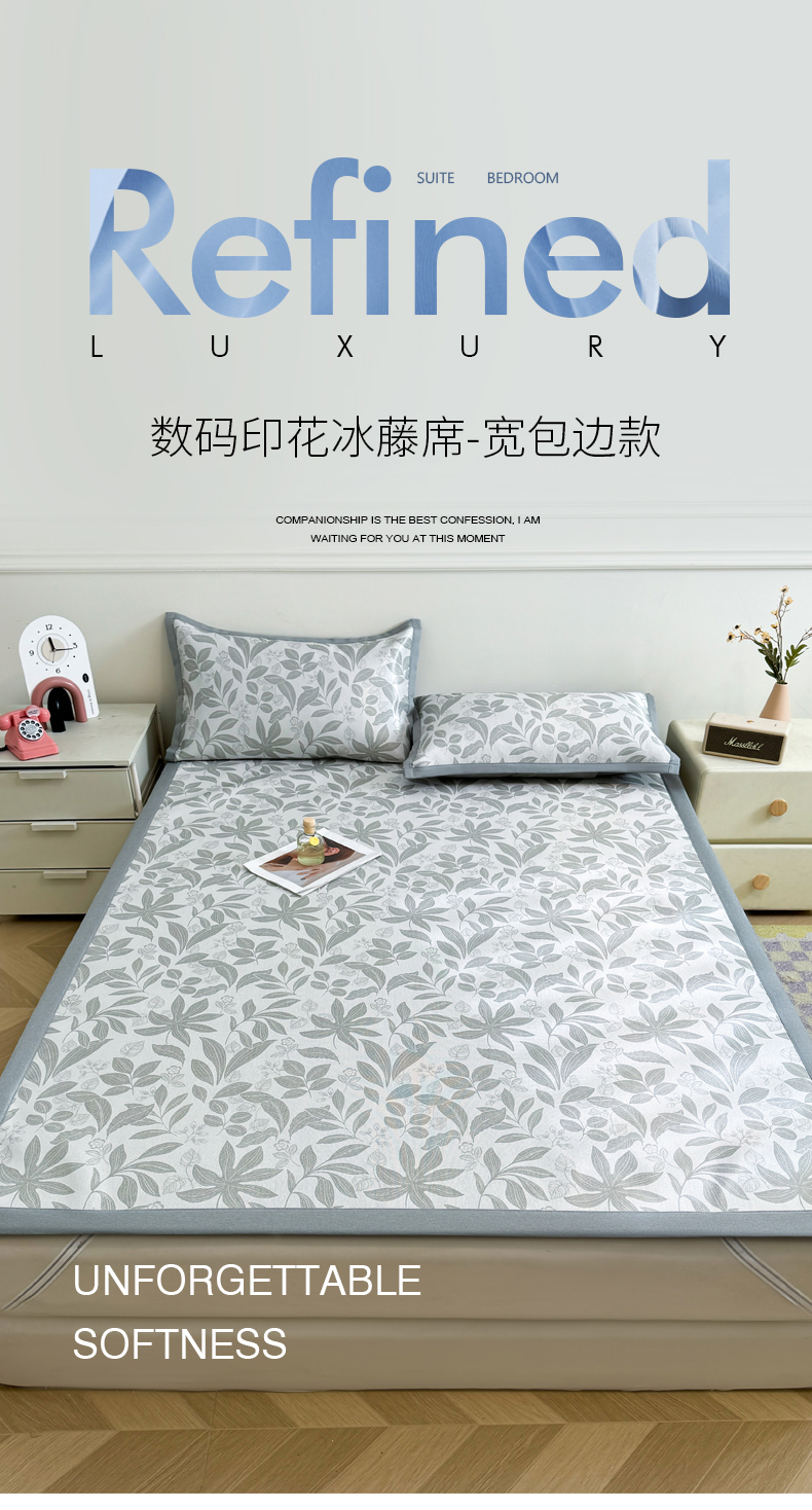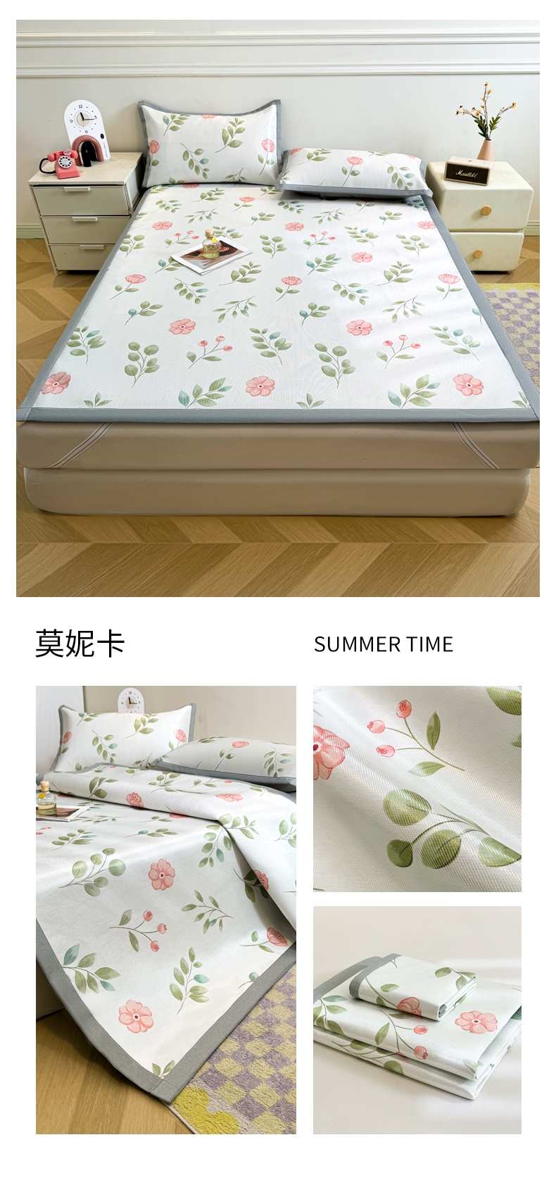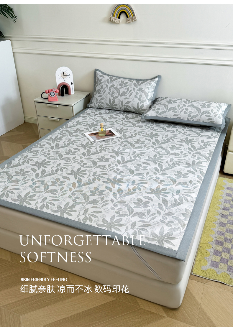商品名称:LIFE.丽芙 2025春夏季新品数码印花冰藤凉席平铺冰丝凉席印花小清新绑带款三件套(风格二) 绿茵